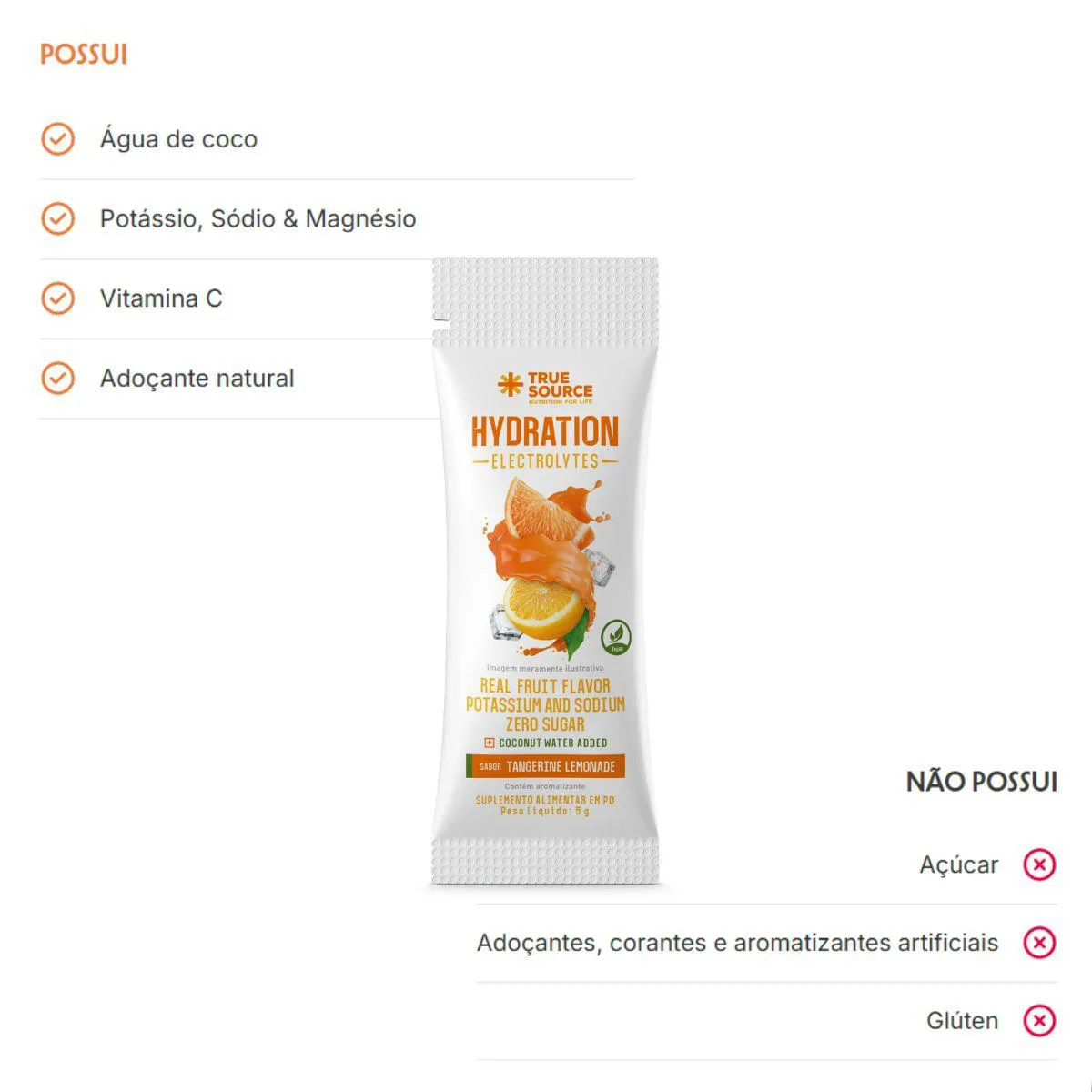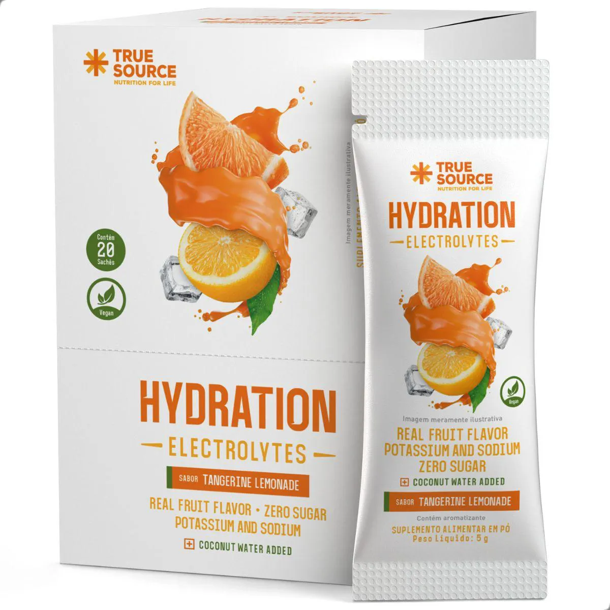 O que é e para que serve o Hydration Electrolytes Hidro Eletrolitico 5G Box 20 Sache True Source Tangerine Lemonade?