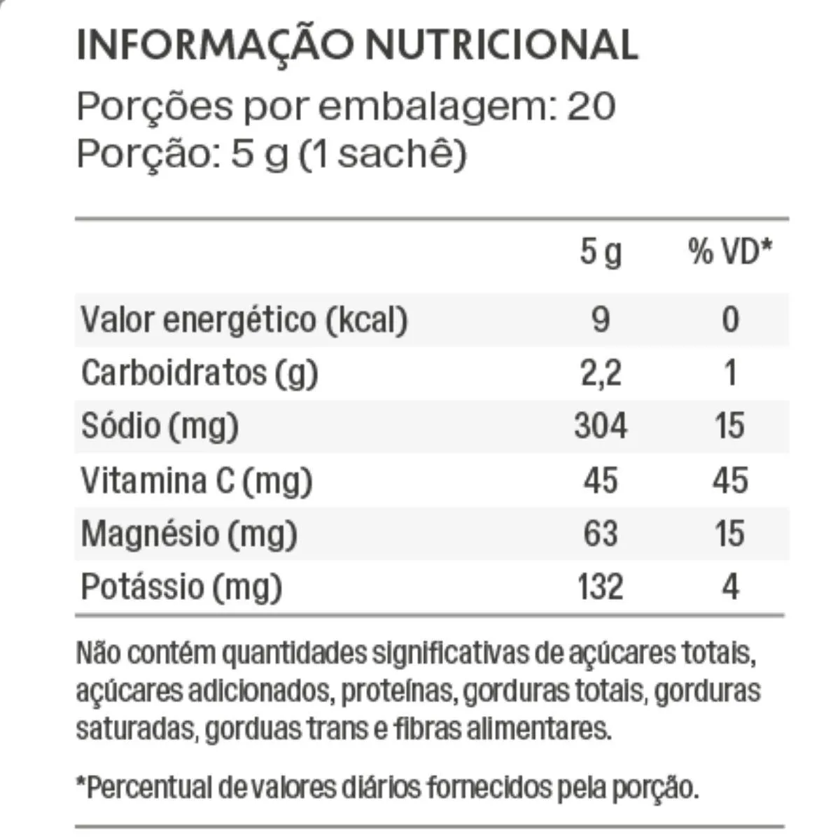 - Praticidade de uso com sachês individuais de 5g fáceis de misturar em água ou bebidas.