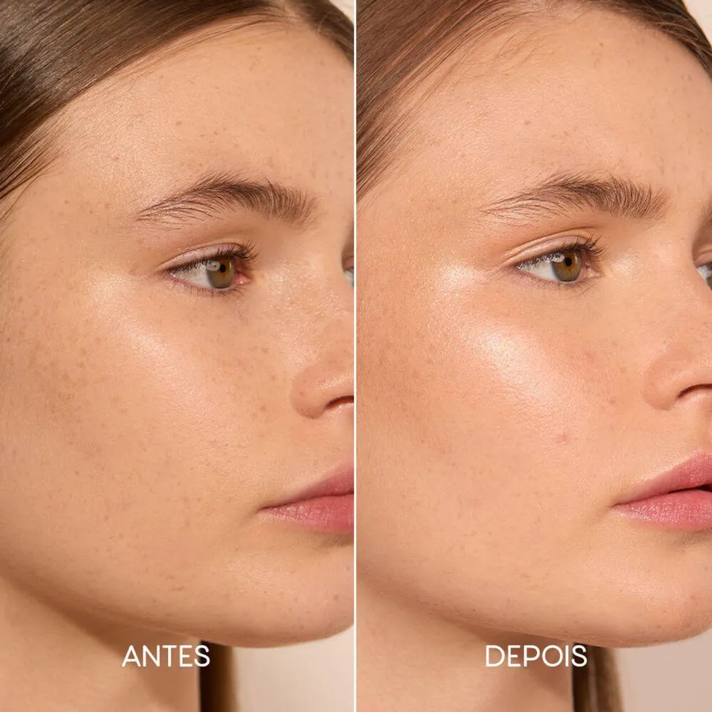 Se você é fã de um visual iluminado, pode usar iluminador nas produções diurnas sem medo! O produto é perfeito tanto para uma make leve durante o dia quanto para uma produção marcante à noite. Ele destaca seus traços, realça pontos estratégicos do rosto e acrescenta uma camada de brilho super elegante ao visual.