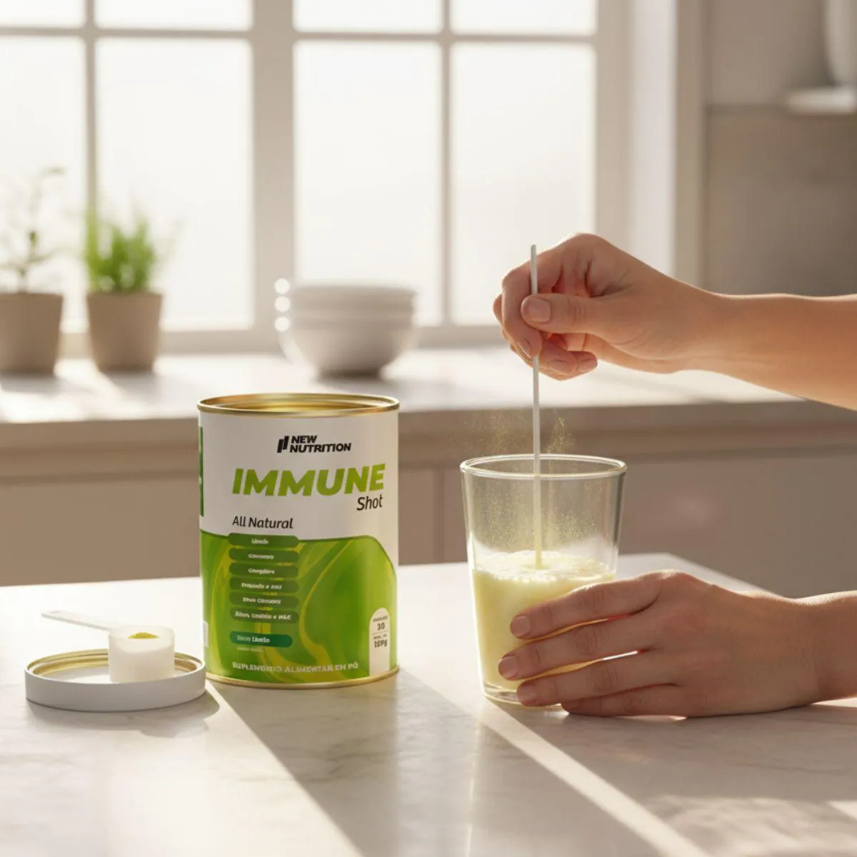 O Immune Shot Matinal é um suplemento em pó all natural desenvolvido para ser consumido como uma bebida matinal, formulado com vitaminas e extratos naturais. Seu objetivo principal é reforçar a imunidade e oferecer nutrientes essenciais logo ao despertar, sendo uma opção prática para incluir no ritual do café da manhã, dissolvendo uma dose em água ou suco.
