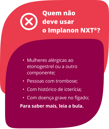 - Tenham alergia ao etonogestrel ou a qualquer componente de Implanon NXT®.