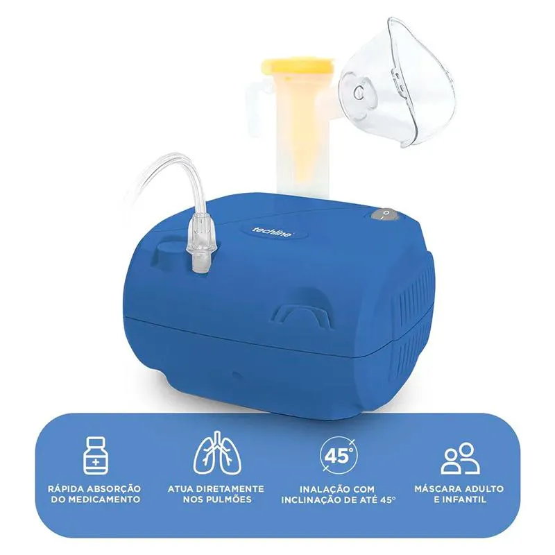 Inalador Nebulizador Compressor Nb01 Bivolt Azul - Techline