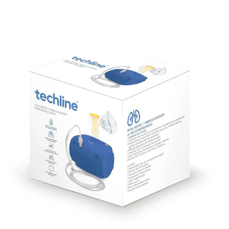 Inalador Nebulizador Compressor NB01 Bivolt Azul - Techline