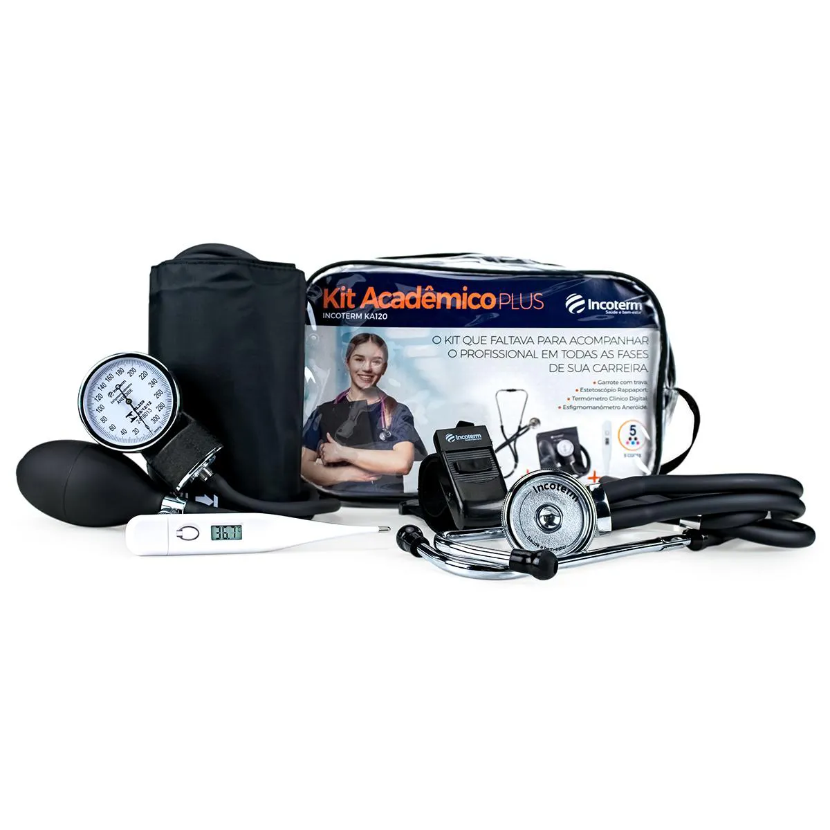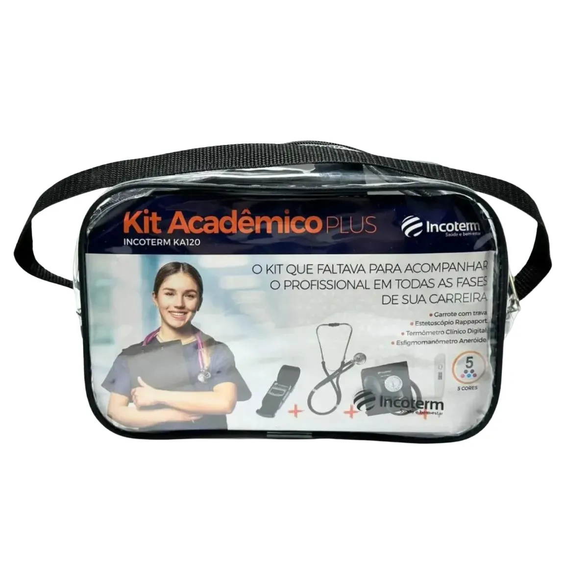 O Kit Acadêmico de Enfermagem Inconterm Plus KA120 Preto é um conjunto completo de instrumentos de medição e diagnóstico voltado para estudantes e profissionais da área da saúde. Composto por esfigmomanômetro, estetoscópio, termômetro digital e garrote, o kit oferece precisão, praticidade e eficiência em todas as fases da carreira médica e de enfermagem.