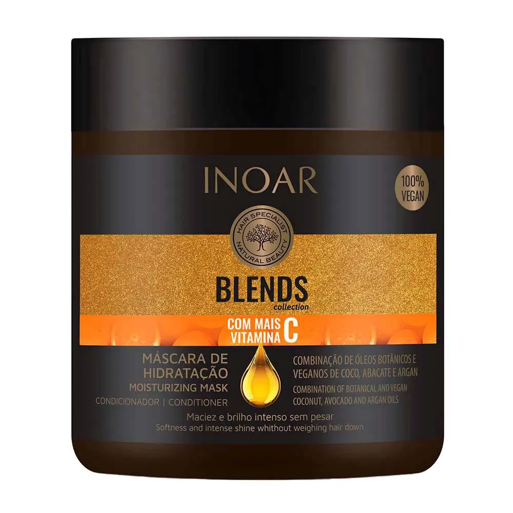 A linha Inoar Blends foi desenvolvida a partir de um blend de óleos botânicos e veganos especialmente para cabelos ressecados. Uma combinação de óleos de coco (vitamina e e ácidos graxos), abacate (vitaminas A, B, D e aminoácidos) e argan (antioxidante).