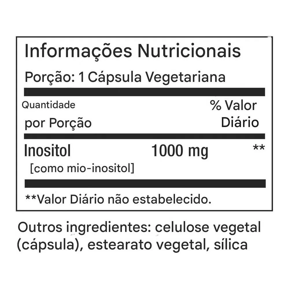O Inositol 1000mg é um suplemento alimentar em cápsulas que fornece 1000mg de inositol por porção. Desenvolvido pela Life Extension, apresenta fórmula pura, vegana e de alta qualidade, ideal para complementar a rotina nutricional.