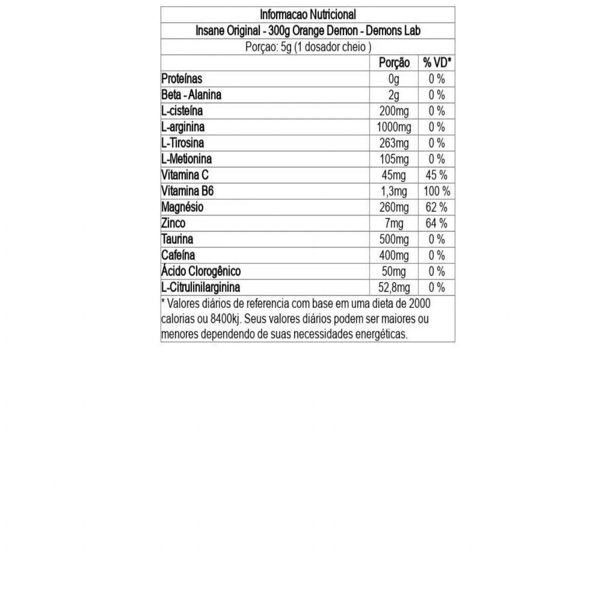 O Insane Original Orange da Demons Lab é um pré-treino projetado para fornecer energia extrema, foco mental e aumento da resistência. Este suplemento é formulado com ingredientes que ajudam a maximizar o desempenho durante os treinos mais intensos.