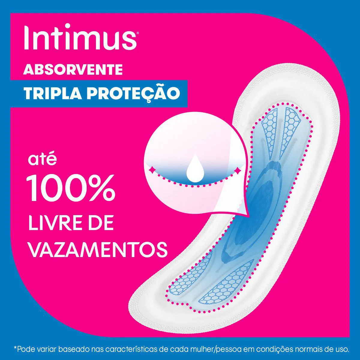 O Absorvente Intimus Tripla Proteção Cobertura Suave sem abas proporciona segurança e conforto durante o período menstrual. Utilizando tecnologias de alta performance, ele evita vazamentos e oferece uma absorção muito mais eficiente, com formato anatômico que se ajusta melhor ao corpo.