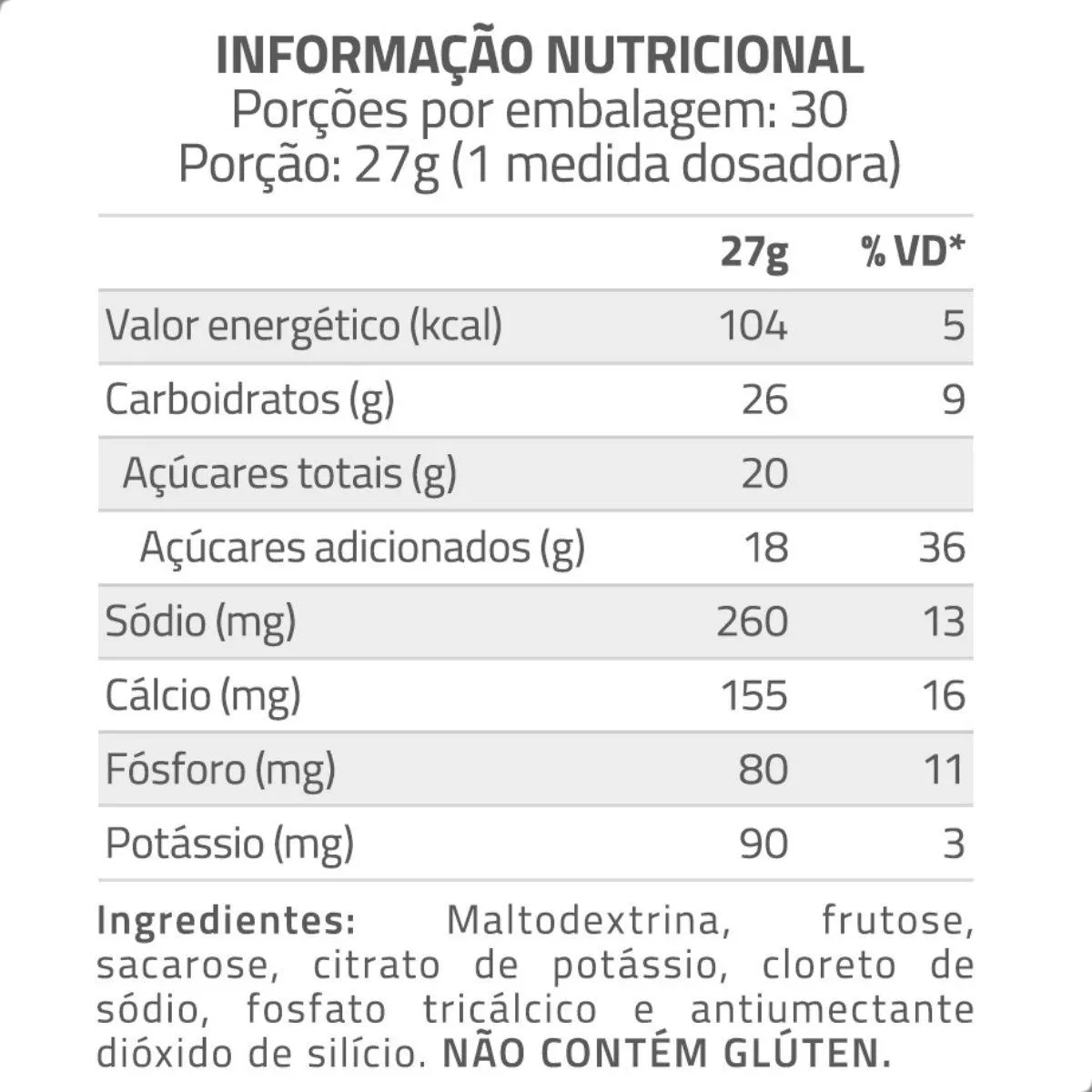 - Fórmula clara com eletrólitos selecionados.
