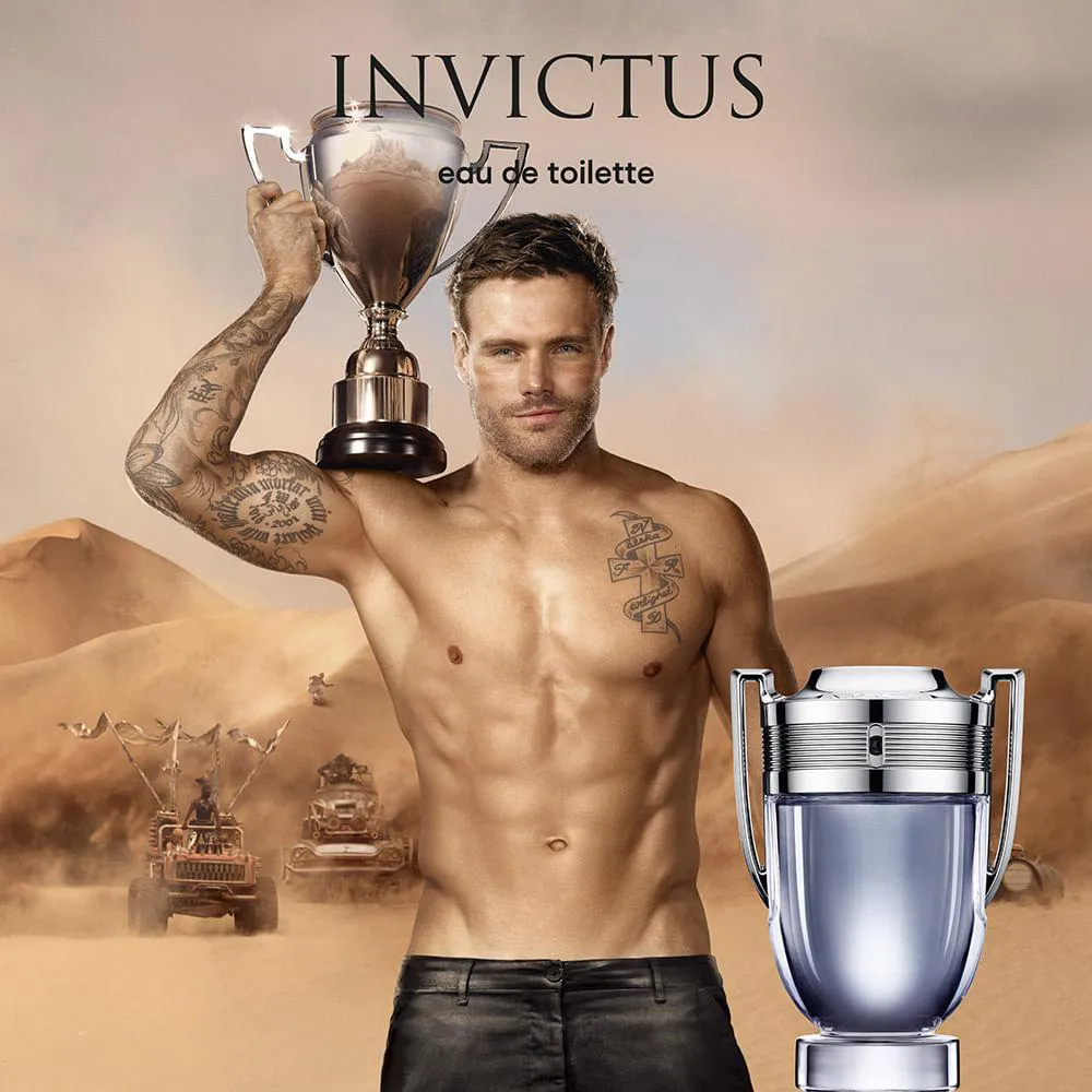 Após o sonho de ser uma estrela do rock e sonho de ser rico e famoso, Paco Rabanne te convida a descobrir uma nova fantasia... Ser vitorioso com o perfume Invictus! Um campeão invejado, um símbolo sexual. Ícone para homens, fantasia total para as mulheres!