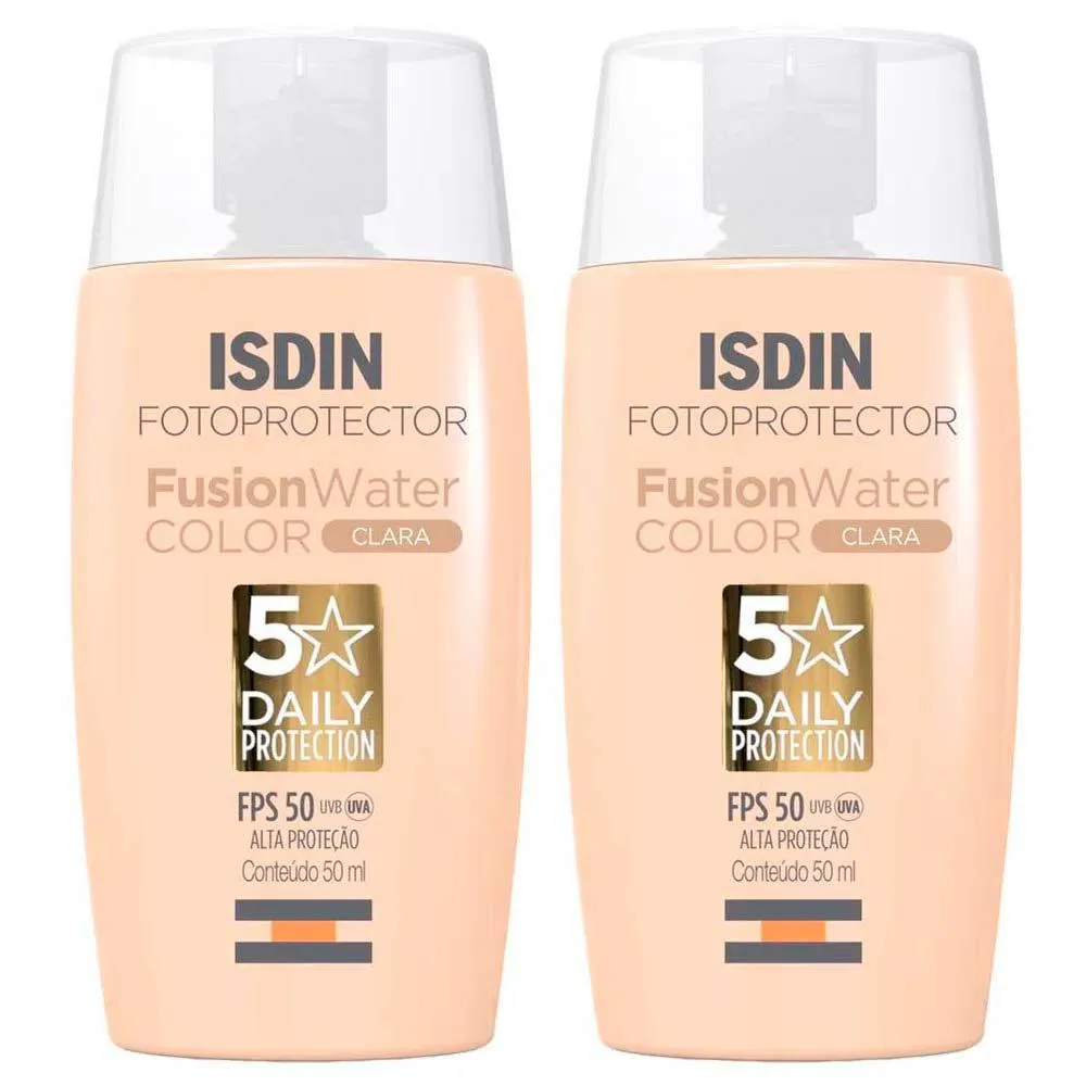 Isdin Fusion Water 5 Stars Color Kit com 2 Unidades – Protetor Solar Facial com Cor Fps50 – 50Ml – Clara