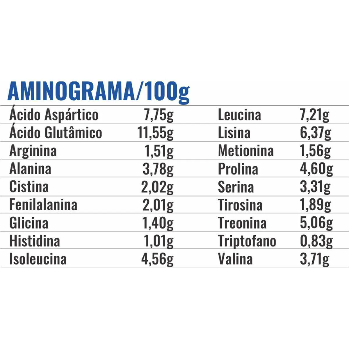 - Rico em aminoácidos essenciais e BCAAs.