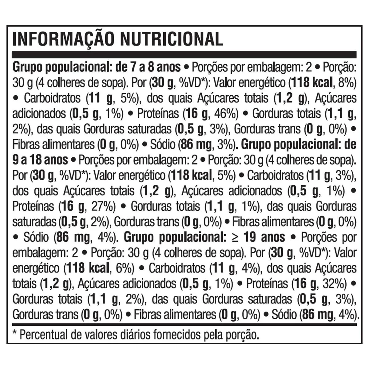 - Selo de Qualidade VLabor. Recomendações de Uso: Suplemento alimentar de uso adulto e infantil (a partir de 7 anos de idade): Acrescente 30 g de ISOCRISP (1 colher medida/ meio pote) ao alimento de sua preferência. Pode ser consumido juntamente com cereais matinais, frutas, pudins, sorvetes, gelatinas, açaí, sopas e saladas. Ingredientes: Blend proteico [proteína de soro do leite isolada (Whey Protein Isolate – WPI) e proteína de soro do leite concentrada (Whey Protein Concentrate – WPC)], farinha de arroz e lecitina de soja. ALÉRGICOS: CONTÉM LEITE E DERIVADOS DE LEITE E SOJA. CONTÉM LACTOSE. NÃO CONTÉM GLÚTEN. Cuidados e Conservação: - Manter o produto bem fechado e conservar ao abrigo de luz, calor, odor e umidade.