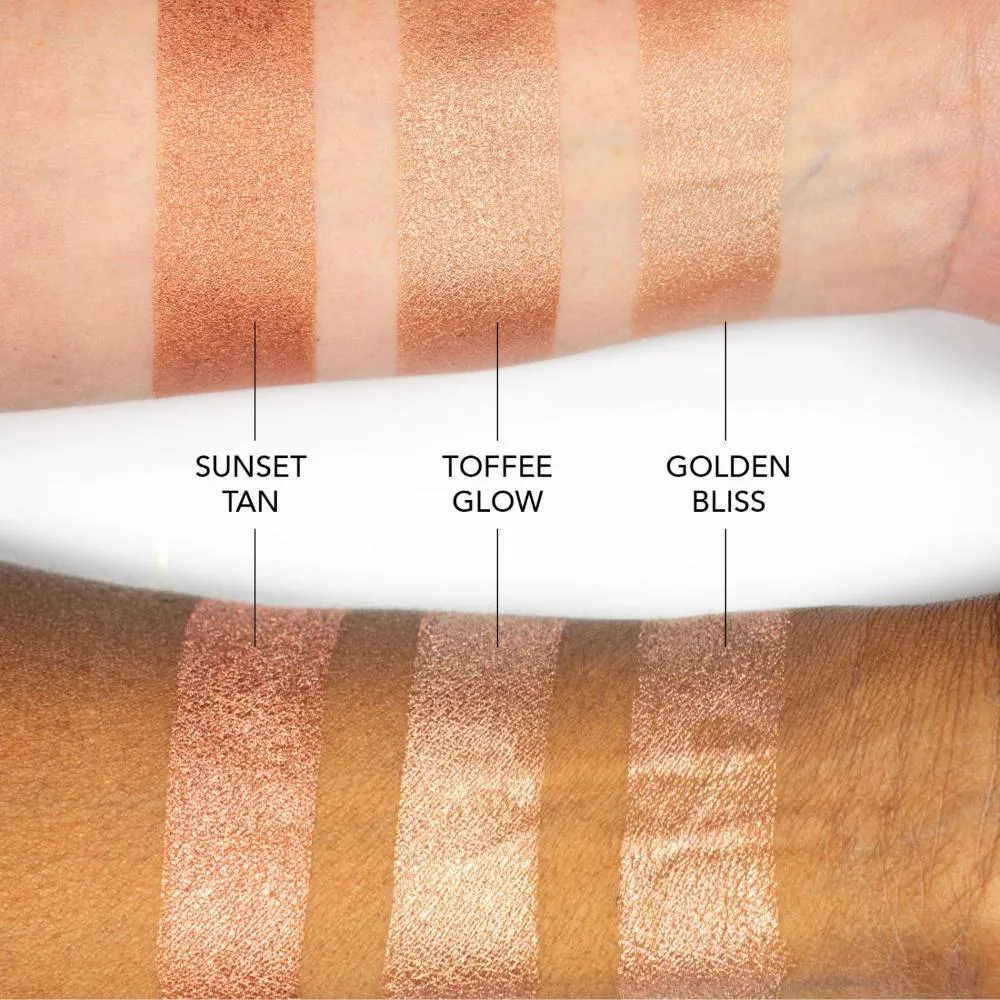 - Produto 2 em 1: atua como bronzer e iluminador. - Textura inovadora em jelly que desliza suavemente sobre a pele. - Acabamento Golden Bliss, conferindo um bronzeado com brilho. - Fórmula vegana e livre de parabenos, cuidando da sua pele. - Embalagem compacta e prática para levar sempre com você.