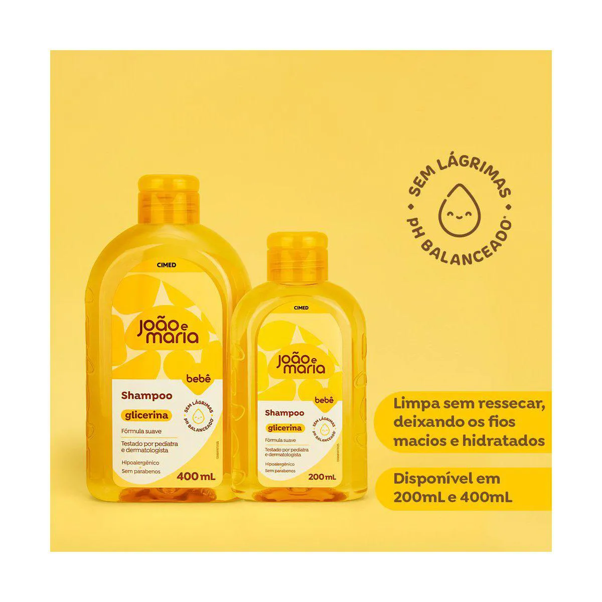 O Shampoo Glicerina João e Maria limpa suavemente a pele e o couro cabeludo do bebê. Sua fórmula é segura para os primeiros dias de vida do recém-nascido. Seu uso proporciona um banho tranquilo e sem lágrimas.