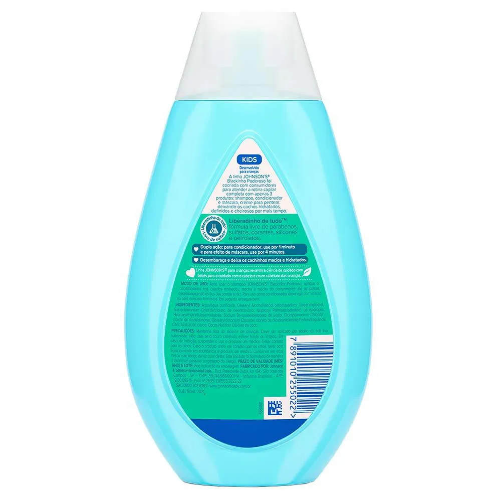 Desenvolvido especialmente para cabelos com curvatura de 3B a 4C, o condicionador e Máscara infantil Para Cabelos Crespos Johnson’s Blackinho Poderoso, , que hidrata e desembaraça, é enriquecido com óleo de coco e Liberadinho de Tudo- livre de corantes, sulfatos, petrolatos, parabenos e silicones.