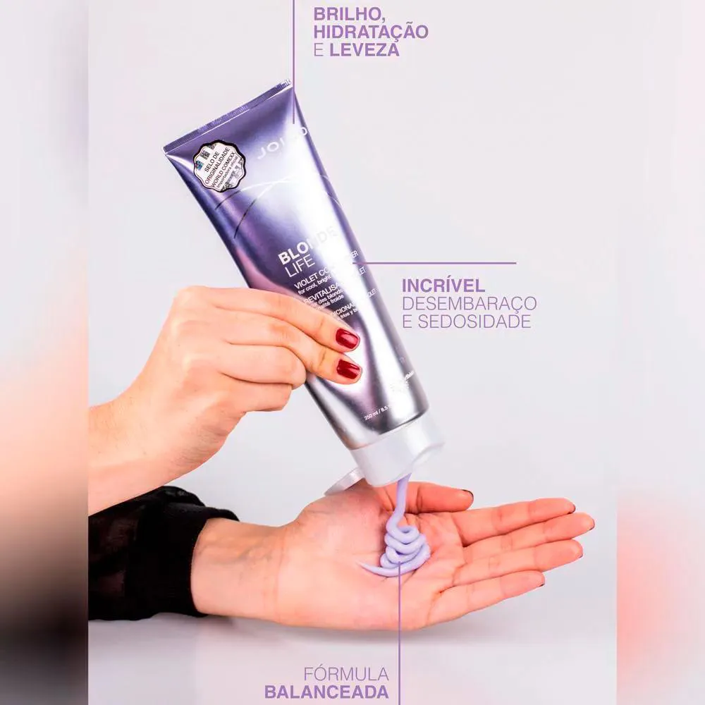 O Joico Blonde Life Violet Condicionador é essencial para manter cabelos loiros ou grisalhos saudáveis, livres do amarelado e com brilho intenso. Ideal para quem busca hidratação e neutralização da cor em um único produto.