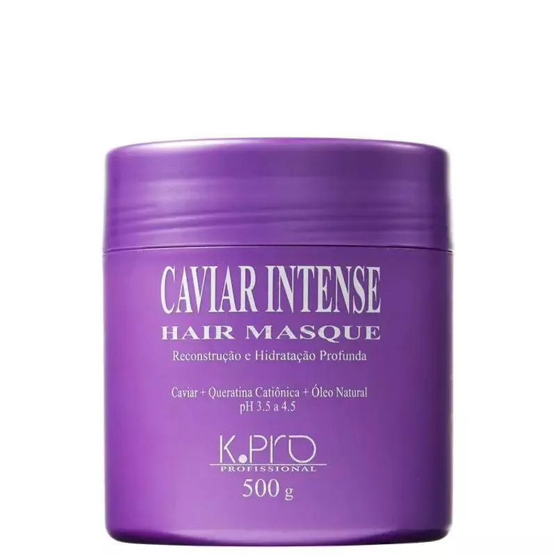 Máscara de tratamento para cabelos ressecados e danificados, com ou sem químicas. K.Pro Caviar Intense Hair Masque proporciona maciez e sedosidade imediatas aos fios, além de reconstruir fios danificados e proteger a coloração.