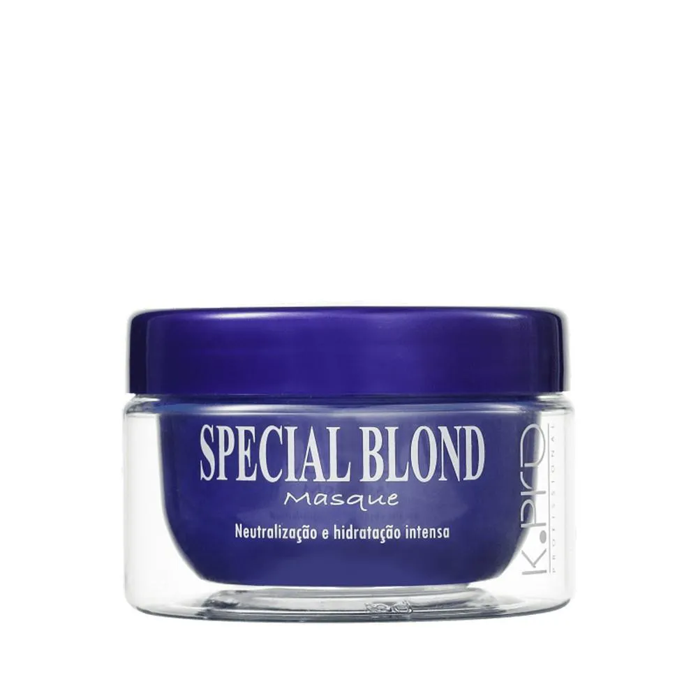 Máscara hidratante K.Pro special blond Máscara hidratante K.Pro special blond matizadora Special Blond Masque. O produto funciona como um potente neutralizante, além de restaurar a força e a elasticidade da camada interna e externa dos fios. Com pH ácido (3.5 a 4.5), micropigmentos de última geração, nanopartículas de queratina seletiva (hidrolisada e quaternizada) em alta concentração e HMA Caribbean Oil (exclusiva tecnologia Hair Micro Adesive) é indicada também para grisalhos e loiros naturais com desbotamento precoce.