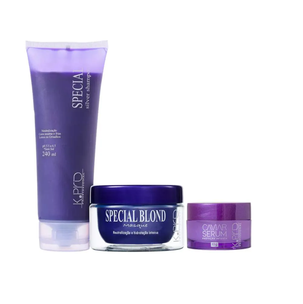 K Pro Special Silver - Shampoo Desamarelador 240ml+mascara Blond 165g+serum 10g