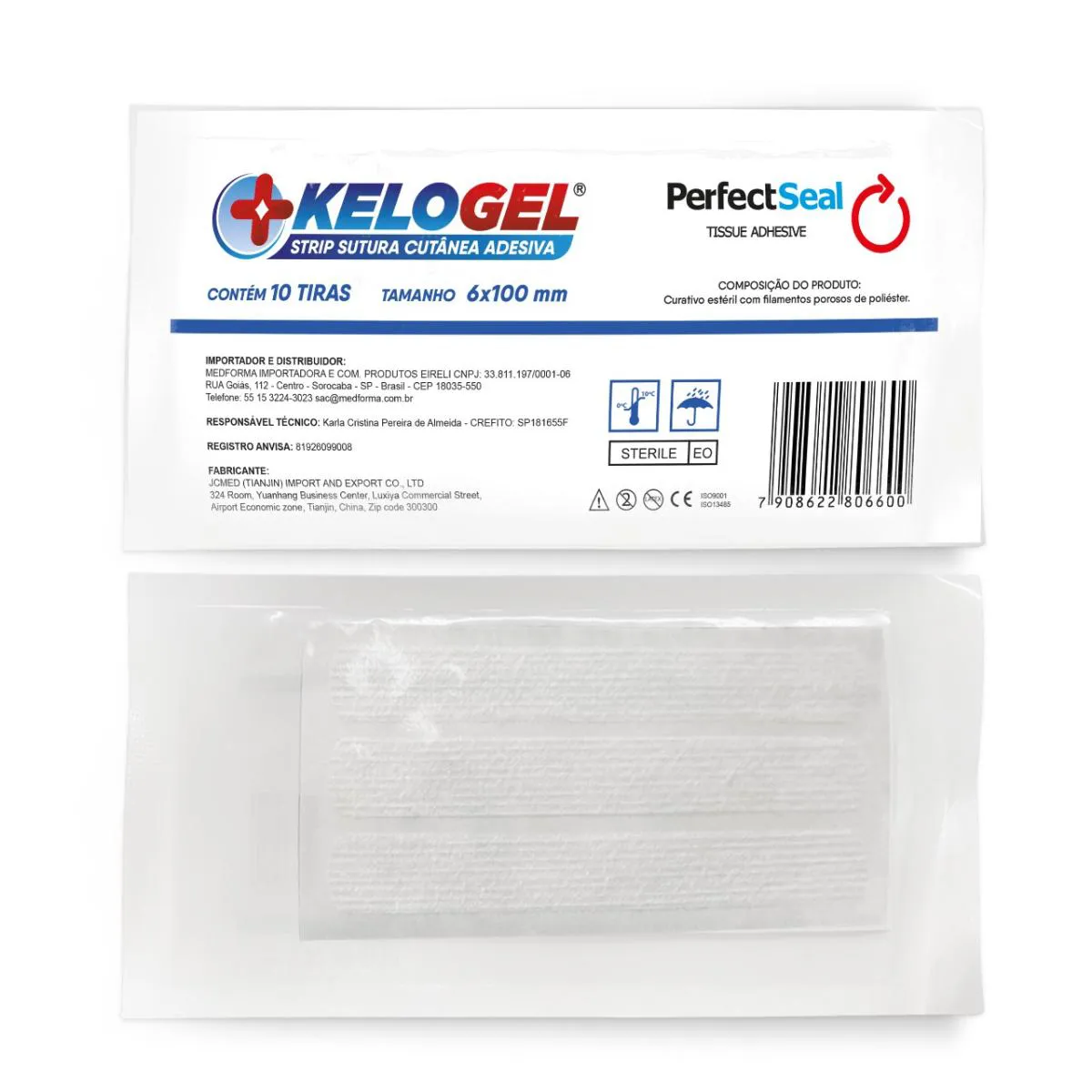 KELOGEL STRIP – SUTURA CUTANÊA ADESIVA O KELOGEL STRIP PERFECTSEAL é utilizado para fechamento de pele, substituindo métodos convencionais em lacerações e incisões cirúrgicas. Pode ser aplicado com suturas, grampos ou sozinho para suporte adicional pós-remoção. Composição do produto: Curativo estéril com filamentos porosos de poliéster. Indicações: Substituição de métodos tradicionais de fechamento em lacerações e incisões. Pode ser usado com suturas, grampos ou sozinho para suporte adicional pós-remoção. Modo de uso: