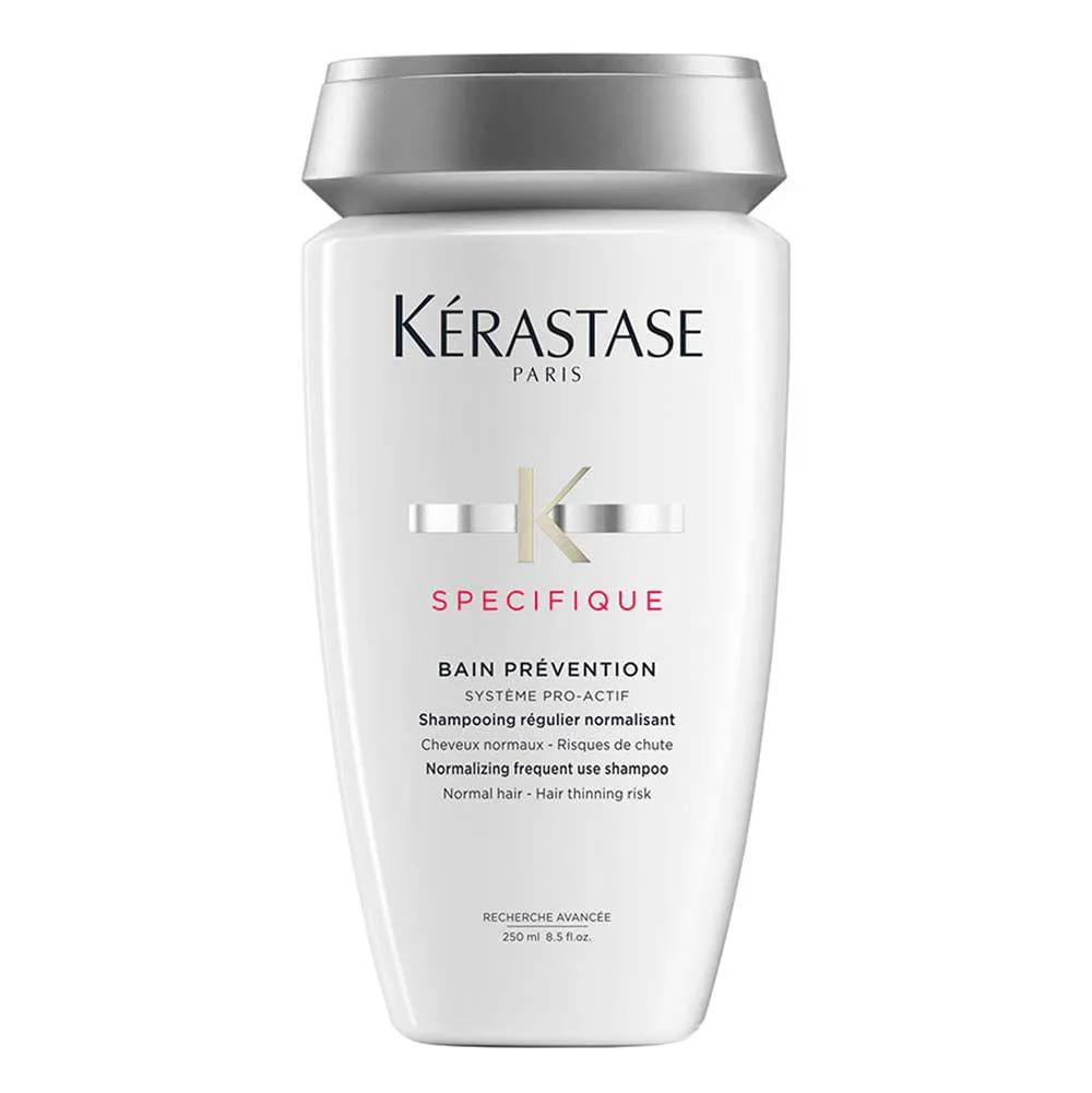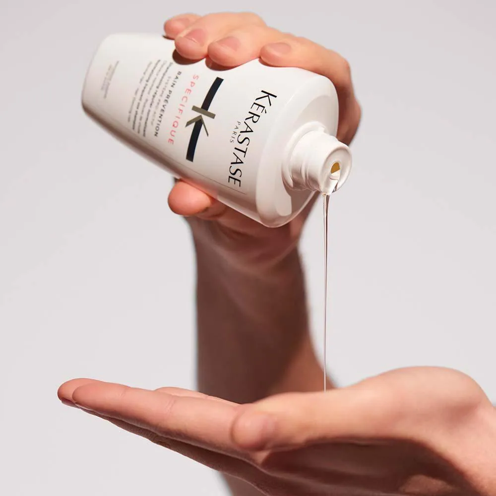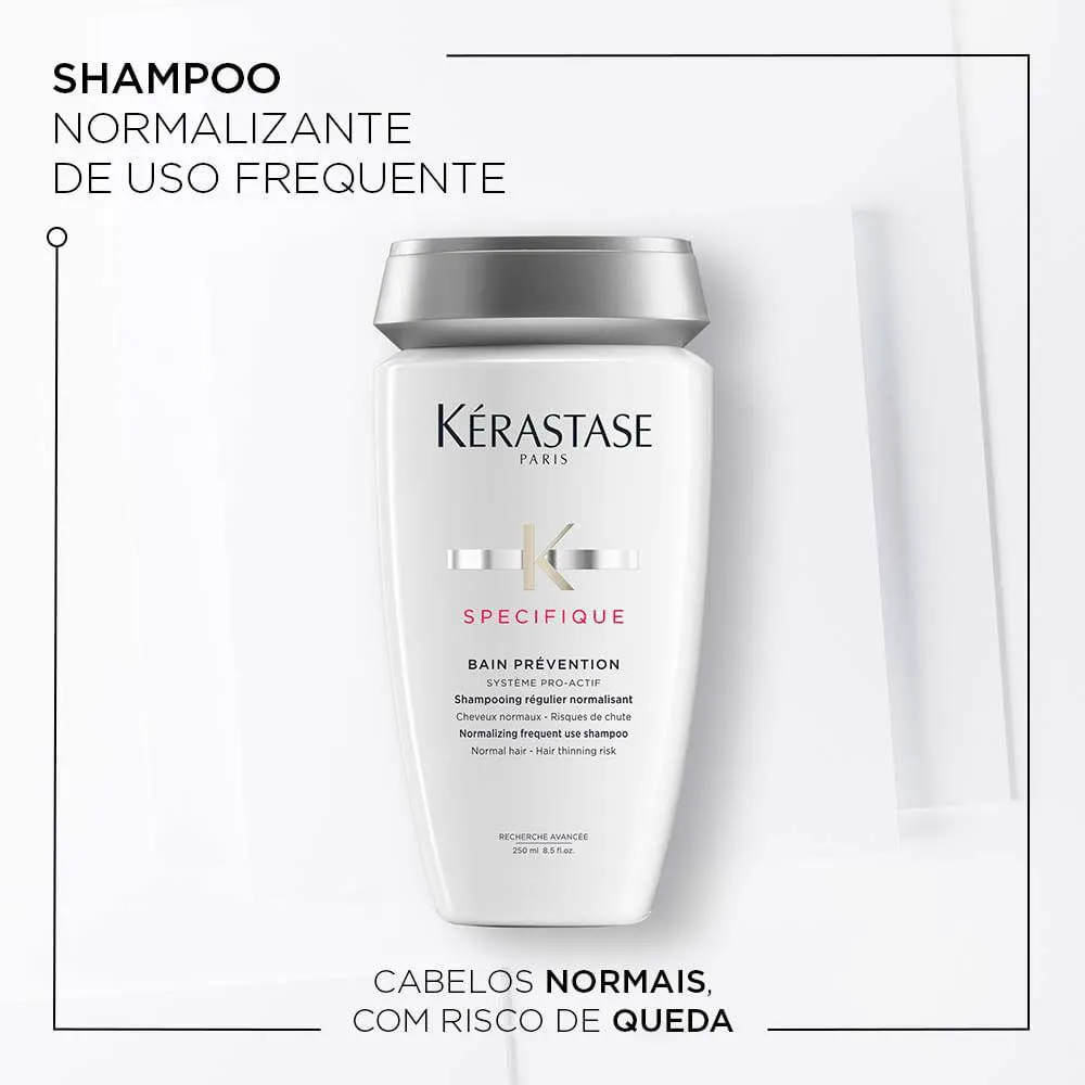 shampoo para cabelos com tendência à queda. O shampoo Spécifique Bain Prévention de Kérastase é ideal para pessoas com couro cabeludo sensível e reativos. Além de limpar a região sem agredir, o produto garante a nutrição aos fios. Sua fórmula combina L-Carnosina, vitamina e e extrato de Moringa, ao novo Complexo AOX, que mistura os melhores ingredientes antioxidantes ativos e as moléculas mais avançadas para proteger o couro cabeludo dos danos do estresse oxidativo.
