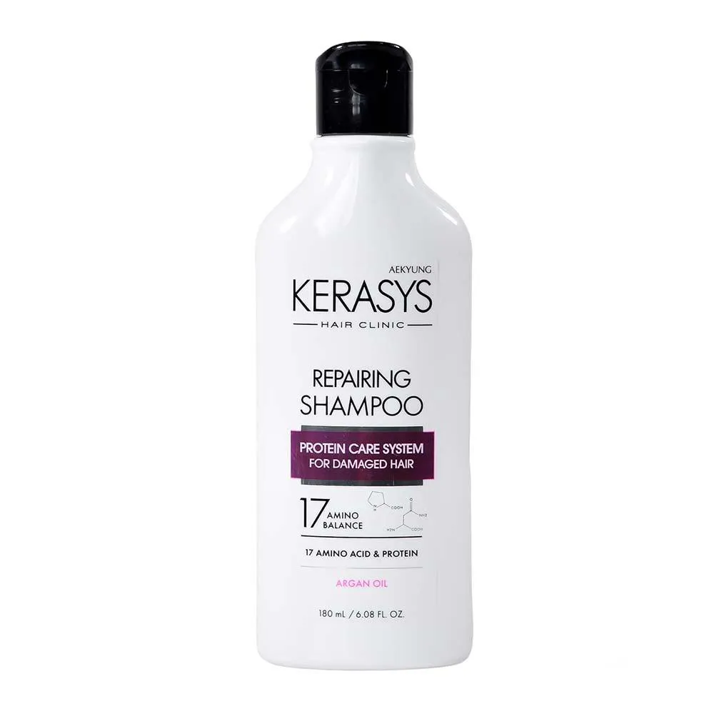 O Kerasys Repairing é um shampoo profissional desenvolvido especificamente para cabelos danificados e quimicamente tratados. Fabricado na Coreia do Sul, este shampoo é composto por uma fórmula rica em óleos naturais como Argan, Jojoba e Abacate, além de conter ceramida, extratos herbais, extrato de edelweiss, pantenol e proteína hidrolisada.