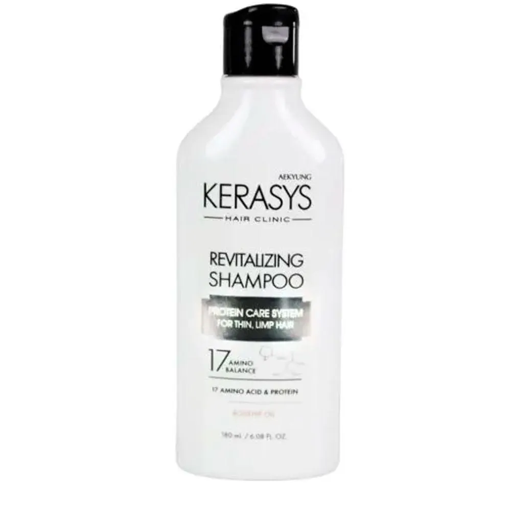 O Kerasys Revitalizing shampoo é um shampoo profissional desenvolvido para cabelos finos, frágeis e com frizz, especialmente lisos ou ondulados, que precisam de volume e vitalidade. Parte da linha Hair Clinic Revitalizing da Kerasys, fabricada na Coreia do Sul, utiliza o Triple Volumizing System com Óleo de Rosa Mosqueta, Óleo de Argan, Óleo de Jojoba, Óleo de Abacate e Extrato de Cranberry para limpar suavemente enquanto fortalece e hidrata os fios. Enriquecido com 17 aminoácidos e proteínas hidrolisadas, ele restaura a fibra capilar, reduz a quebra e promove brilho intenso. Este shampoo transforma a rotina de cuidados em uma experiência de revitalização, conectando-se com quem busca fios leves, encorpados e saudáveis.