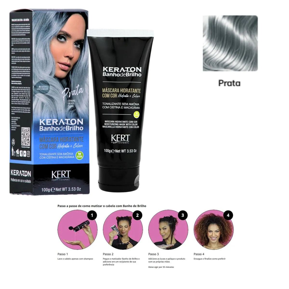 Keraton Banho de Brilho Tonalizante Prata - 100G Hidrata e Colore