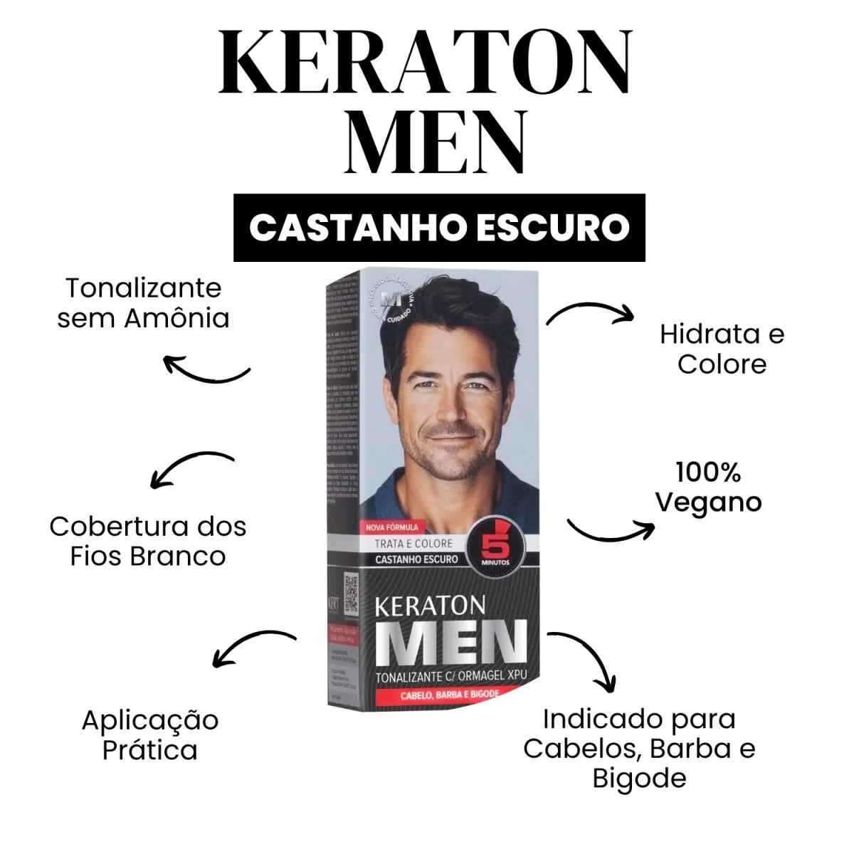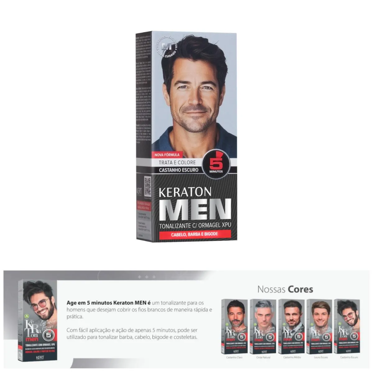***LOJA OFICIAL BELEZA MARCANTE cosméticos*** A Beleza Marcante Cosméticos é uma loja virtual que, há mais de 8 anos, cuida com carinho da beleza de pessoas modernas e atualizadas. Com um olhar atento, buscamos oferecer produtos inovadores que realçam a beleza natural e promovem o bem-estar. Nosso prazo de postagem é de até 24 horas úteis após a confirmação do pedido. Este Anúncio Contém: 1 Unidade de Tonalizante Keraton Men Trata e Colore TONALIZANTE MEN KERATON Keraton Men tonaliza e realça a cor natural dos cabelos, barba e bigode em 5 minutos. O Tonalizante Keraton Men com Omagel XPU é uma coloração semi-permanente que foi desenvolvida com um exclusivo blend de algas marinhas, rico em bipolímeros hidratantes e protetores que auxiliam no tratamento dos cabelos, atuando nos fios como um filme protetor de cor. Tonaliza suavemente os fios brancos realçando a cor dos cabelos devolvendo-lhes uma aparência natural e saudável. Não contém amônia! Não danifica os cabelos. BENEFÍCIOS PRINCIPAIS: Cobertura sutil e natural para cabelos e barba Sem amônia: mais cuidado com o couro cabeludo e a pele do rosto Aplicação prática e rápida: resultado em até 10 minutos Durabilidade superior: cores que não desbotam facilmente Compatível com cabelos e barbas com química (relaxamento, progressiva, etc.) Modo de Uso: 1.Com os cabelos e a barba secos e livres de resíduos de finalizadores, aplique a mistura suavemente.2.Espalhe uniformemente, respeitando o tempo de pausa de 5 a 10 minutos, conforme a cobertura desejada.3.Enxágue com água morna e finalize com o shampoo de sua preferência. RECOMENDAÇÕES IMPORTANTES: Faça a prova de toque e o teste de mecha antes da aplicação. Evite exposição ao sol durante a aplicação. Leia todas as instruções e siga as recomendações de segurança contidas no cartucho. Resultado: Visual masculino renovado, com cabelos, barba e bigode bem cuidados, livres dos brancos e com um aspecto natural e elegante. Sua fórmula exclusiva é livre de amônia, o que proporciona mais suavidade ao couro cabeludo, minimizando o risco de irritações. Com aplicação simples e rápida, o resultado aparece em até 5 minutos, ideal para a rotina agitada de quem busca eficiência sem abrir mão do estilo. Importante: A aplicação deve acontecer em no máximo 3 minutos. Após a aplicação deixe o produto agir por mais 5 minutos, marque no relógio. Para uma cobertura mais intensa dos fios brancos mais resistentes, deixe o produto agir no máximo até 10 minutos. Terminado o tempo de pausa, enxágue com água morna em abundância e lave com o shampoo de sua preferência. ATENÇÃO! Não aceitamos devoluções de produtos usados. Pedimos, por gentileza, que verifique todas as informações antes de finalizar sua compra. Estamos à disposição para esclarecer qualquer dúvida na área de perguntas do anúncio. Será um prazer atendê-lo(a)! BELEZA MARCANTE COSMÉTICOS.