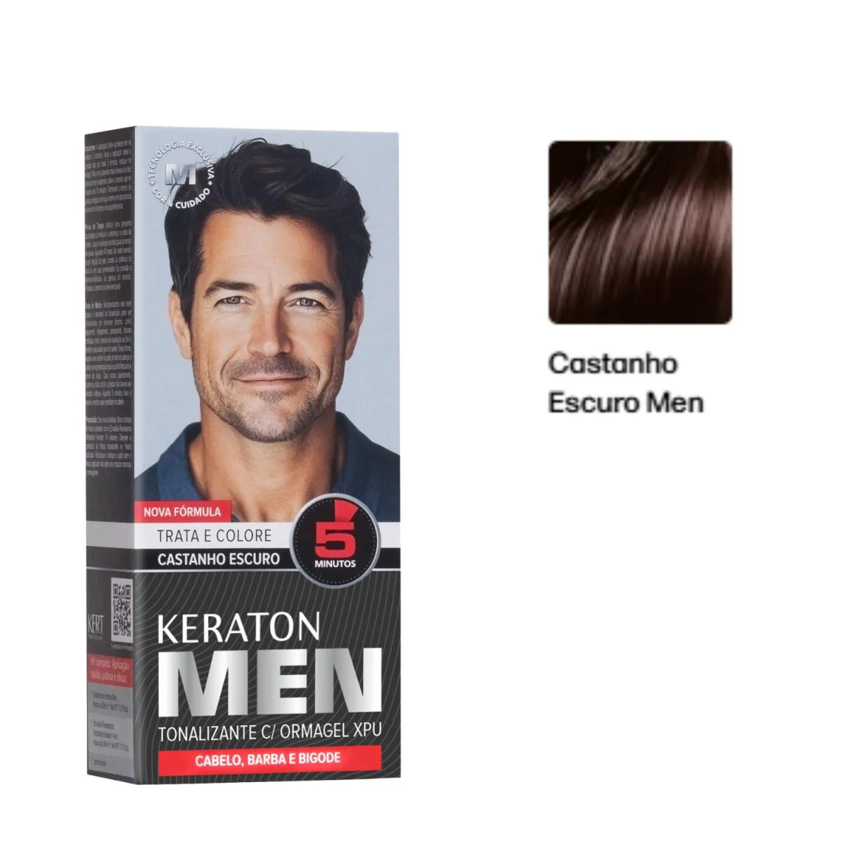 Keraton Men Tonalizante Colore Cabelo e Barba sem Amônia 30Ml - Castanho Escuro