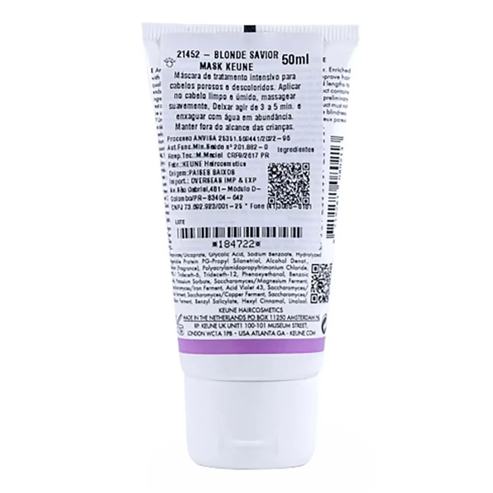 A Máscara Blonde Savior faz parte da linha de tratamento Blonde Savior, desenvolvida especialmente para cabelos sensibilizados, danificados e descoloridos. Assim como nos demais produtos da linha, a máscara conta com Ácido Glicólico e Creatina como ingredientes principais. Enquanto o ácido glicólico atrai água para o fio, mantendo-o hidratado, a Creatina fortalece as ligações dentro do fio de cabelo, recuperando sua saúde e força.