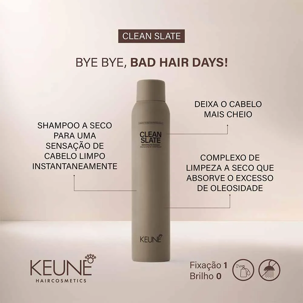 O Keune Style Clean Slate Shampoo é um shampoo a seco vegano especialmente formulado para proporcionar a sensação de cabelos recém-lavados em qualquer momento do dia. Este produto inovador é a solução perfeita para o famoso day after, quando os fios começam a perder o frescor e a oleosidade se torna mais aparente. Com apenas algumas borrifadas, você transforma o aspecto dos seus cabelos, tornando-os limpos, renovados e cheios de vida, sem precisar de uma lavagem completa. Além de economizar tempo, o Keune Style Clean Slate Shampoo é ideal para manter o seu look impecável por mais tempo, absorvendo a oleosidade e a sujeira instantaneamente.