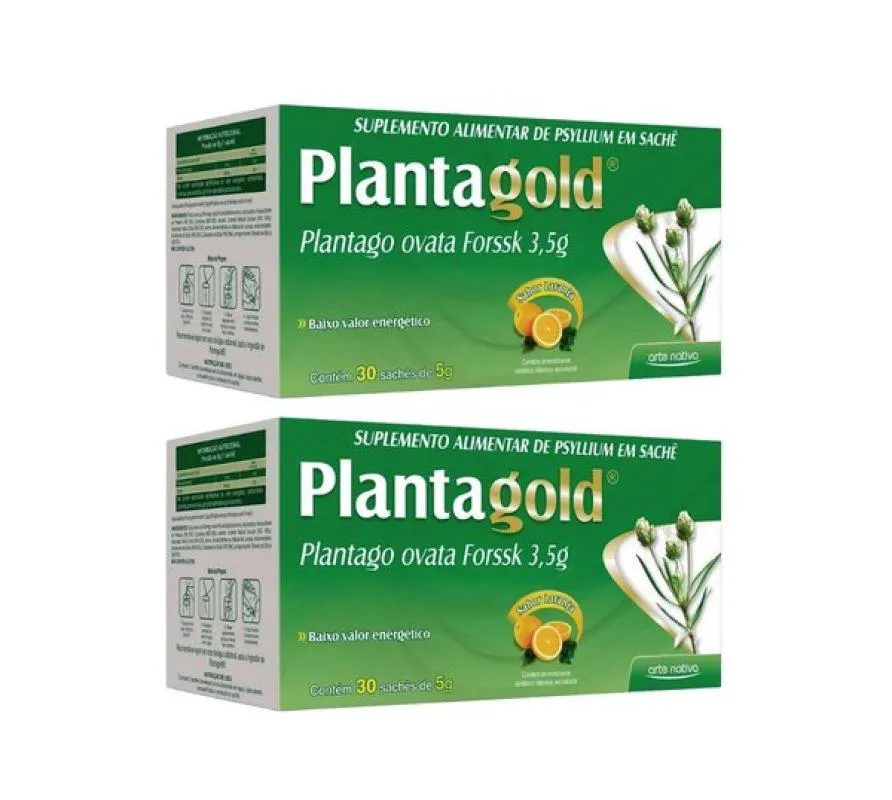 Kit 02 Unidades Planta Gold Psyllium Plantago Ovata C/30 Sachês de 5G Laranja Arte Nativa