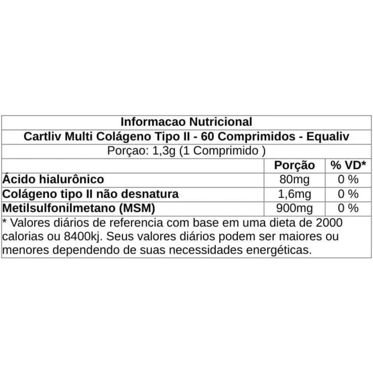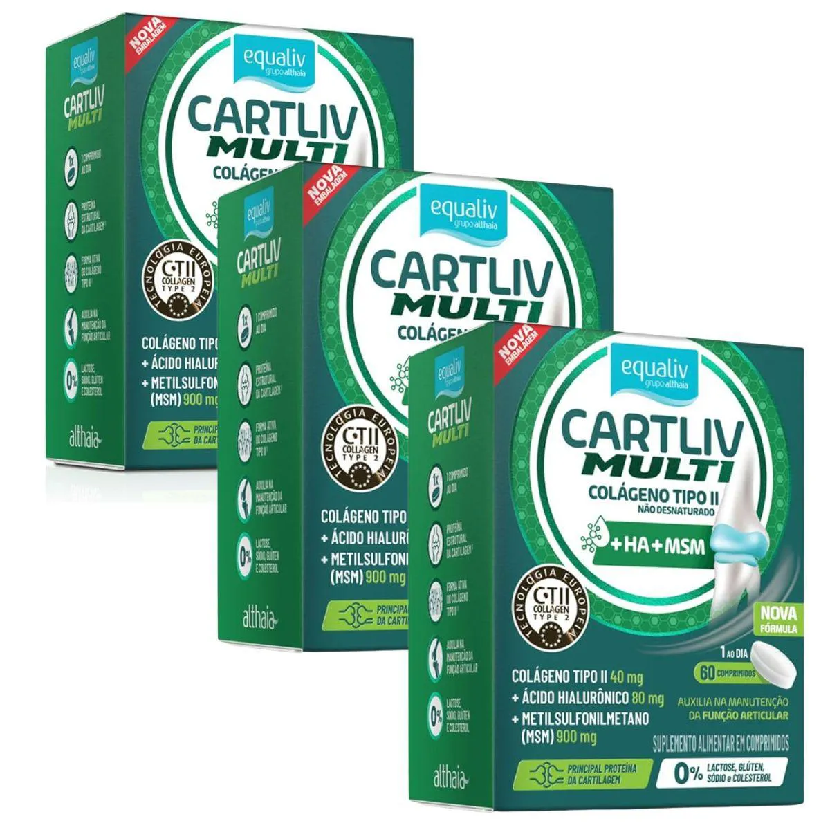 Kit 03 Unidades Cartiliv Multi Colágeno Tipo Ii + Ácido Hialurônico + Msm Equaliv Ha 60 Comprimidos