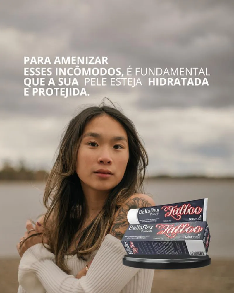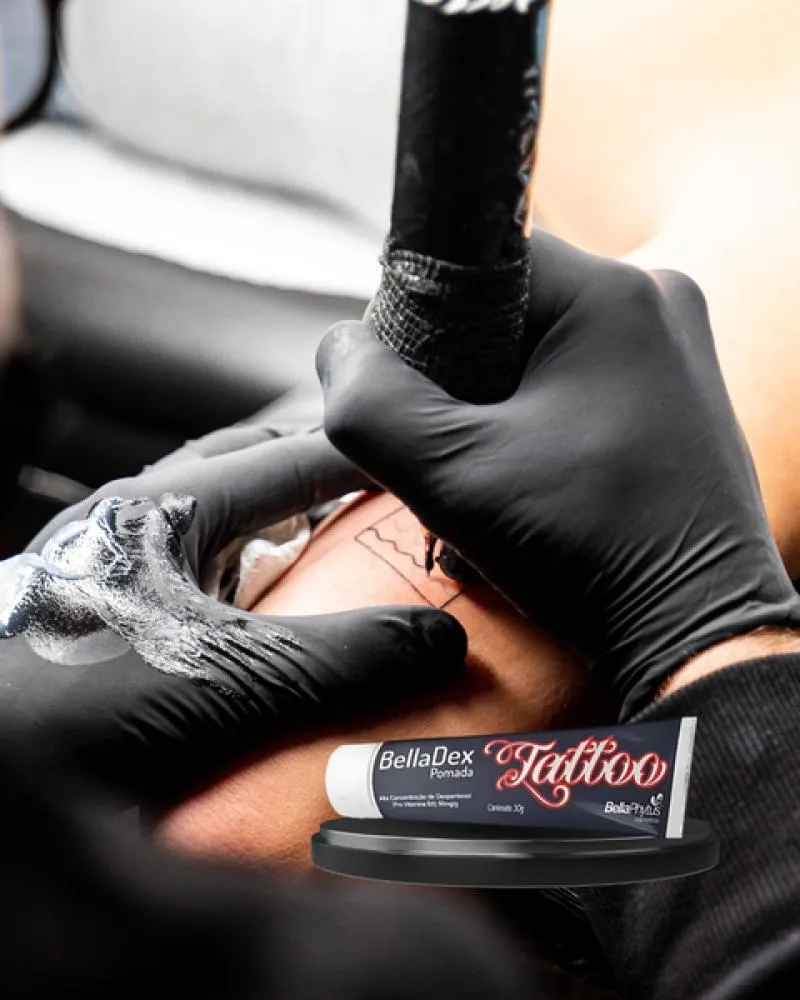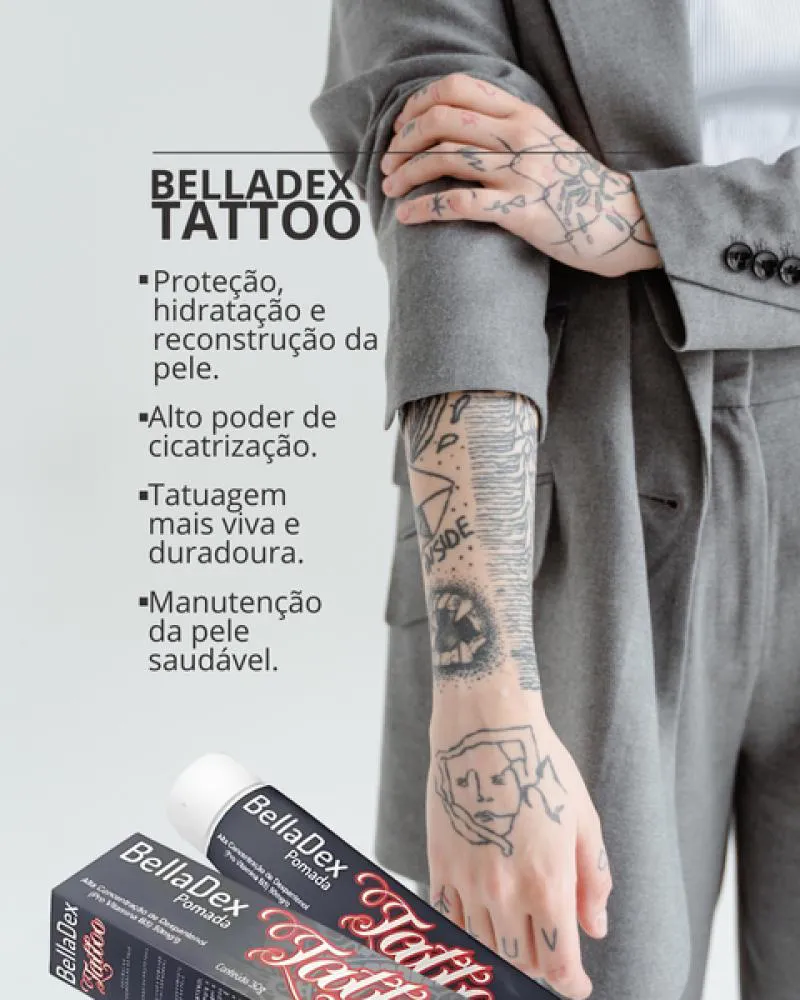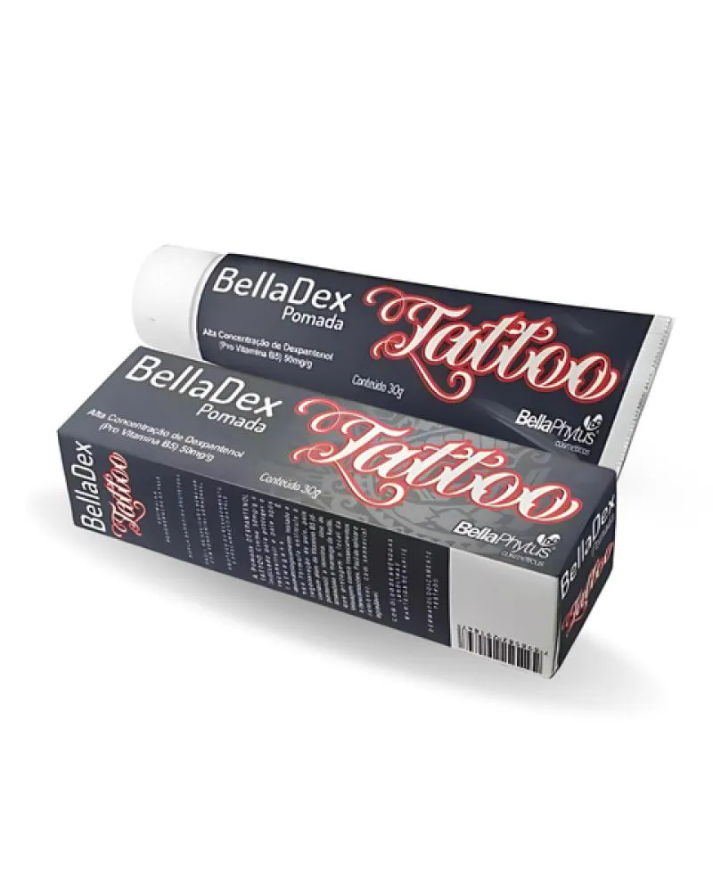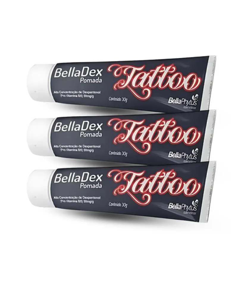 O Kit de 3 unidades BellaDex Pomada Tattoo Cicatrizante 30g BellaPhytus, estimula regeneração da pele nas tatuagens.Mega Barreira protetora - Fácil de aplicar e remover com sensorial agradável.Protege do ressecamento e descamação da pele. É indicada para proteger e reconstruir a pele após tatuagens.