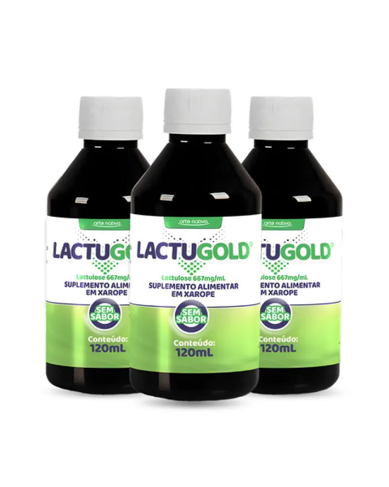 Kit 03 Unidades Lactugold Lactulose Fibras Alimentares Sem Sabor 120ml Arte Nativa -