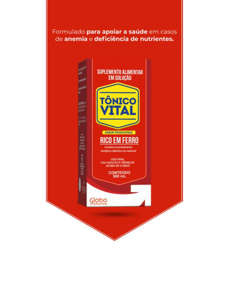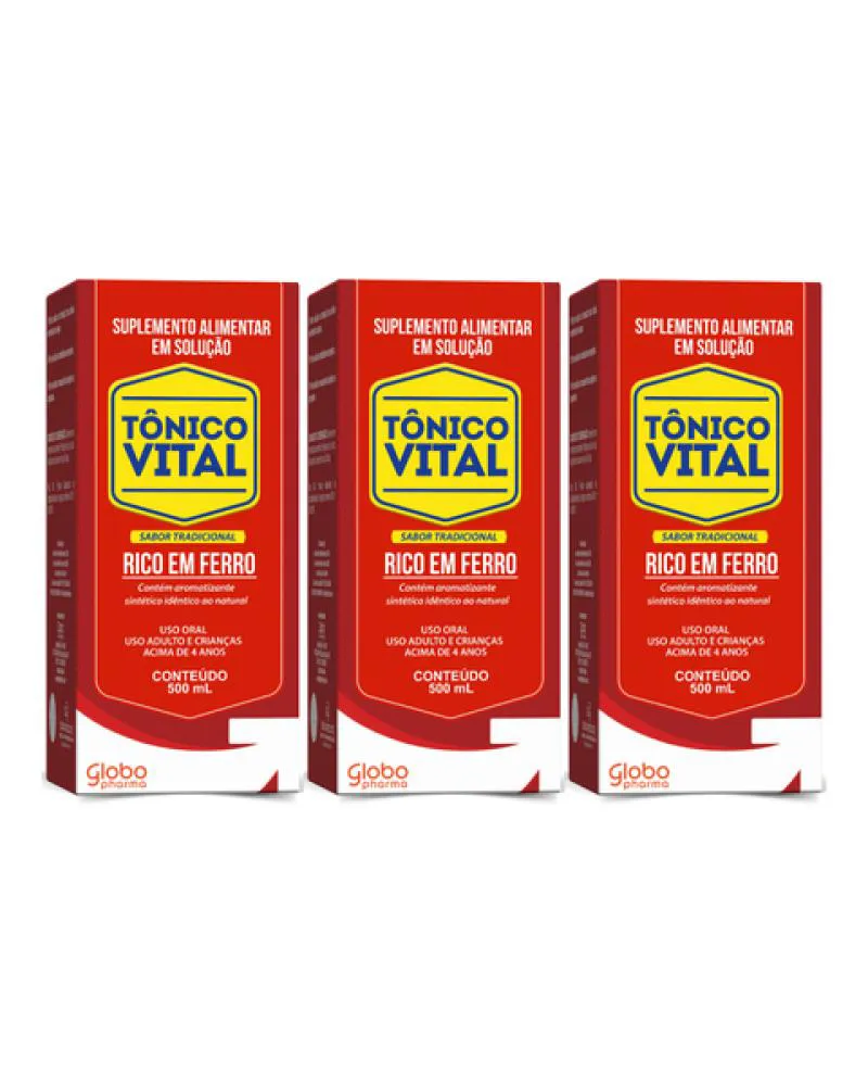 Kit 03 Unidades Tônico Vital Rico em Ferro 500ml Globo Pharma -