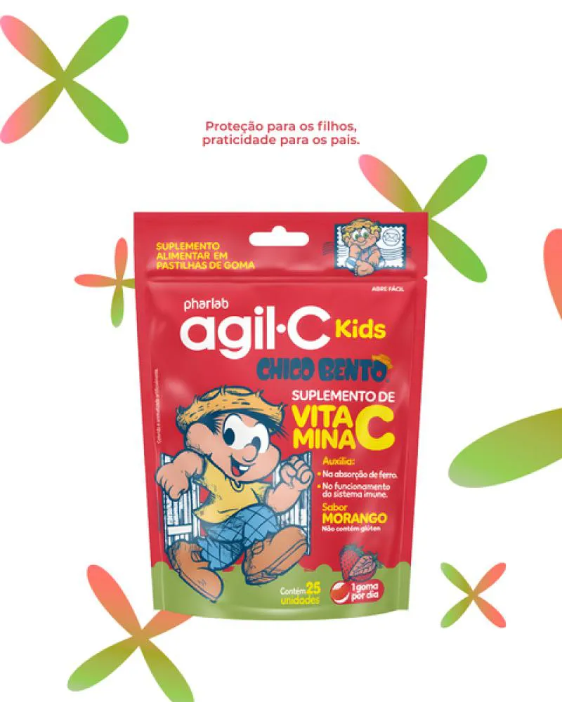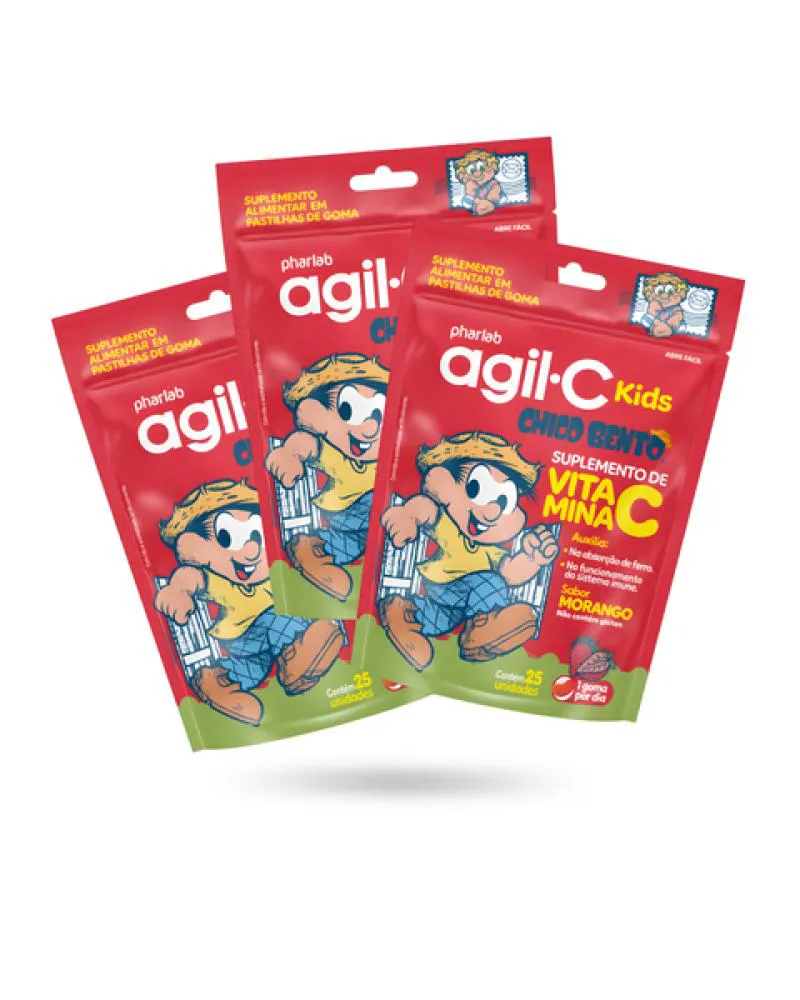 Kit 03 Unidades vitamina c Agil C Kids Morango c/25 pastilhas Goma Pharlab -