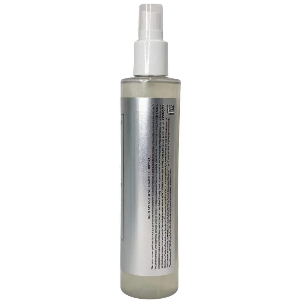 Finalidade: Elaborado com nanopartículas de prata, que garantem performance superior e ação potencializada, o Body Splash Silver confere um irresistível aspecto iluminado à pele. O mix olfativo provoca uma experiência sensorial única: os acordes nostálgicos das reconfortantes notas de leite intensificam as nuances frutais de limão, morango e maçã. A composição com toque gourmet também mescla notas saborosas de baunilha e algodão-doce, que resgatam a suculência das guloseimas que amamos. Leve e reluzente, pode ser reaplicada a qualquer momento do dia.