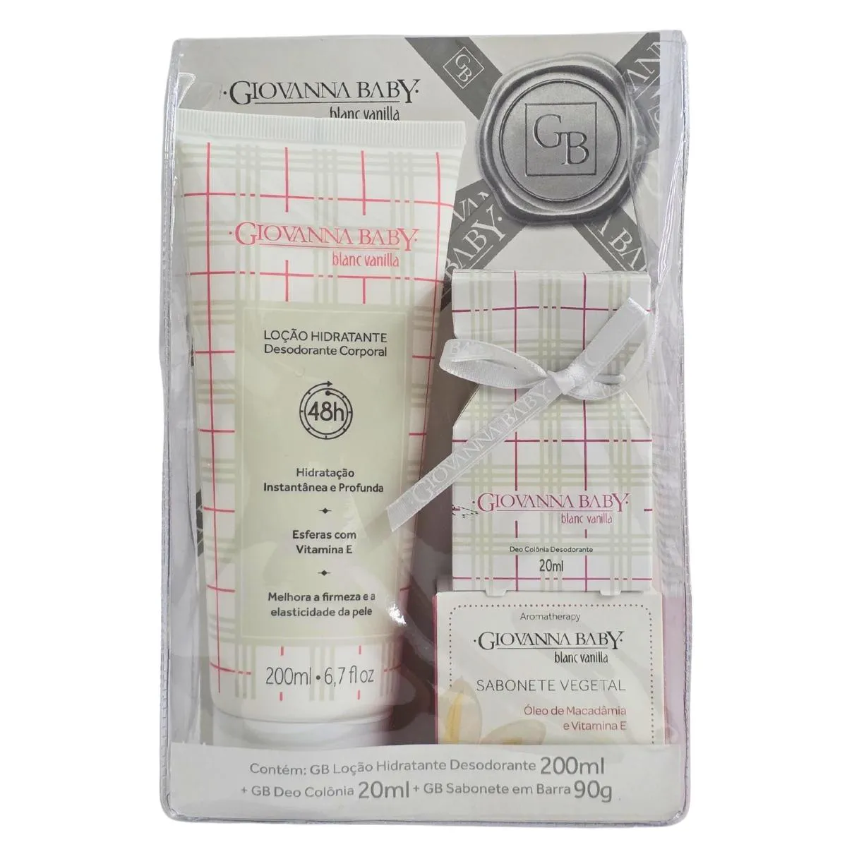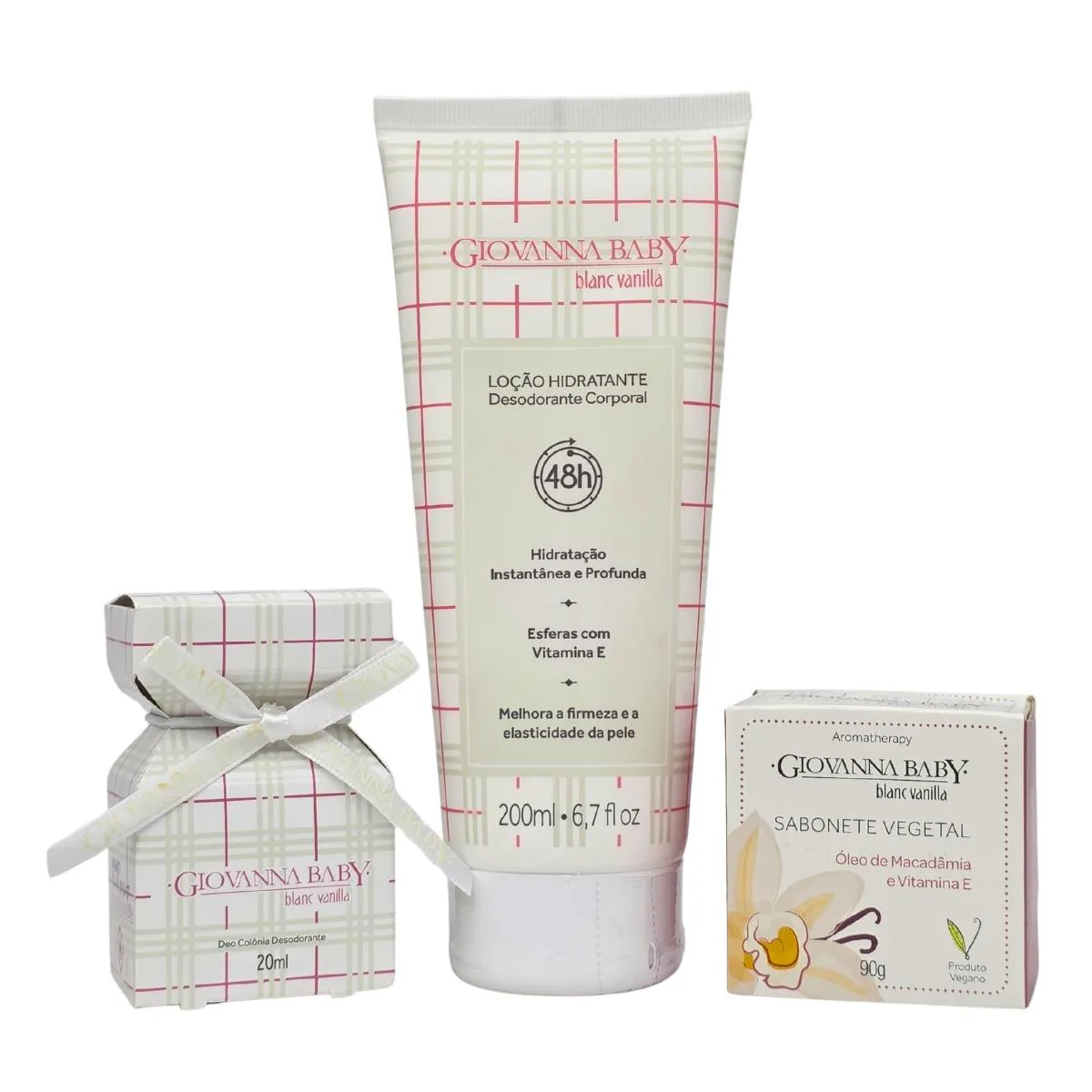 Kit 1 Loção Hidratante 200Ml + 1 Sabonetes em Barra 90G + 1 Deo Colônia 20Ml Blanc Vanilla Giovanna Baby