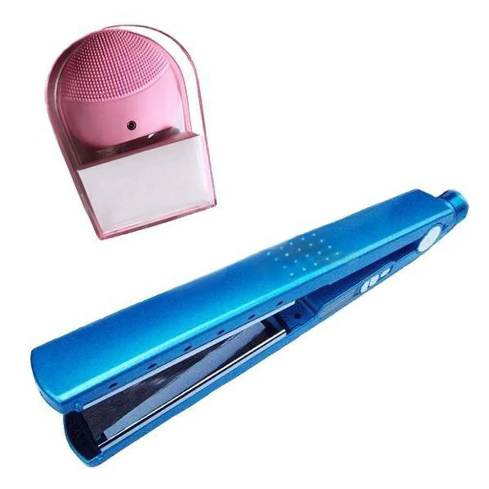 Kit 1 Prancha Nanotitanium + 1 Esponja Facial Rosa Bebê Nº26