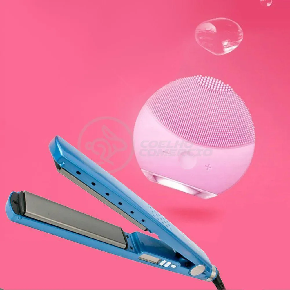 Kit 1 Prancha Nanotitanium + 1 Esponja Facial Rosa Bebê Nº36