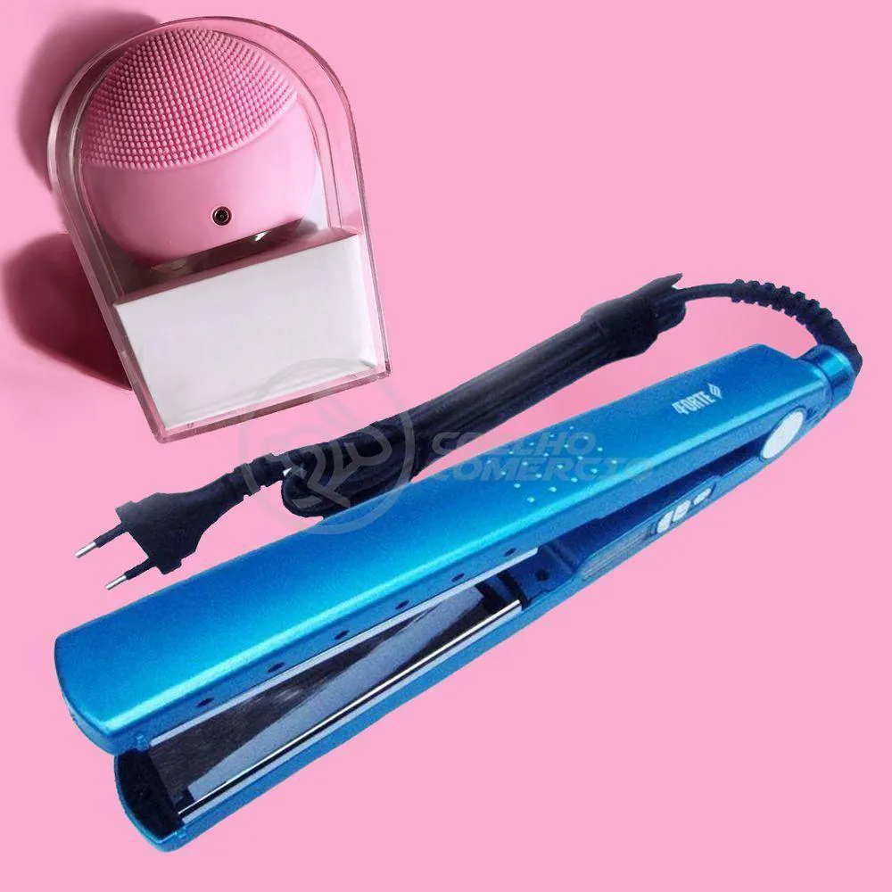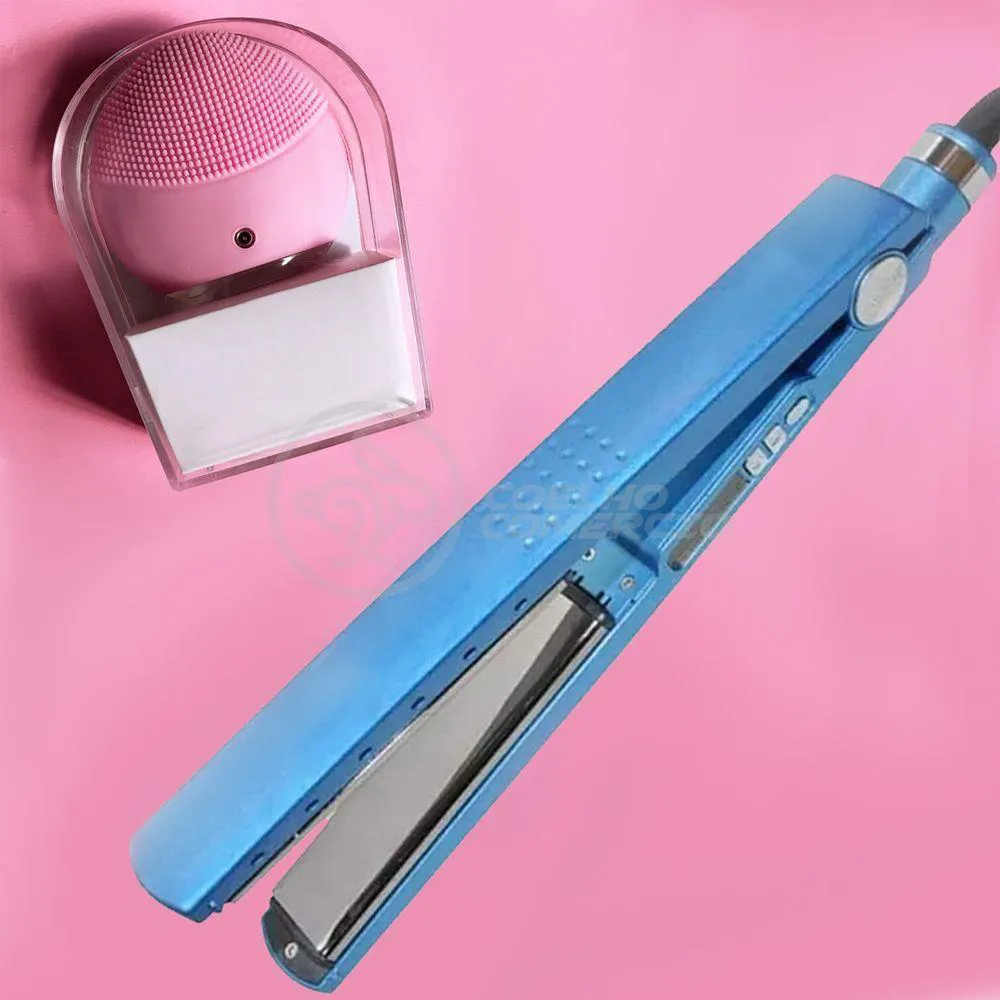 Kit 1 Prancha Nanotitanium + 1 Esponja Facial Rosa Bebê Nº4