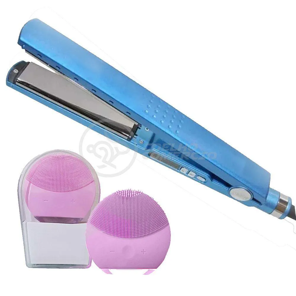 Kit 1 Prancha Nanotitanium + 1 Esponja Facial Rosa Bebê Nº5