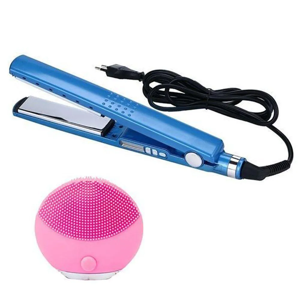 Kit 1 Prancha NanoTitanium + 1 Esponja Facial Rosa Bebê Nº8
