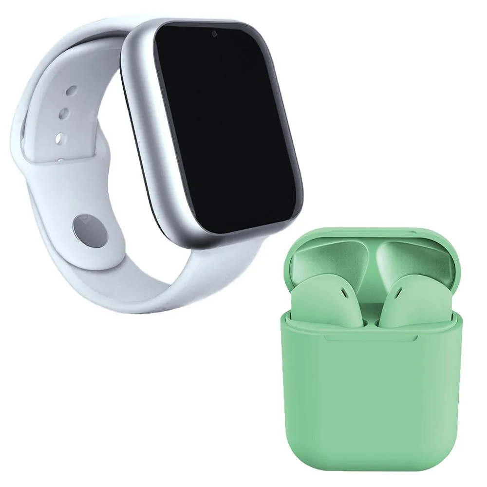 Kit 1 Relógio Smartwatch A1 Pro Plus Branco + 1 Fone Bluetooth Inpods 12 Verde