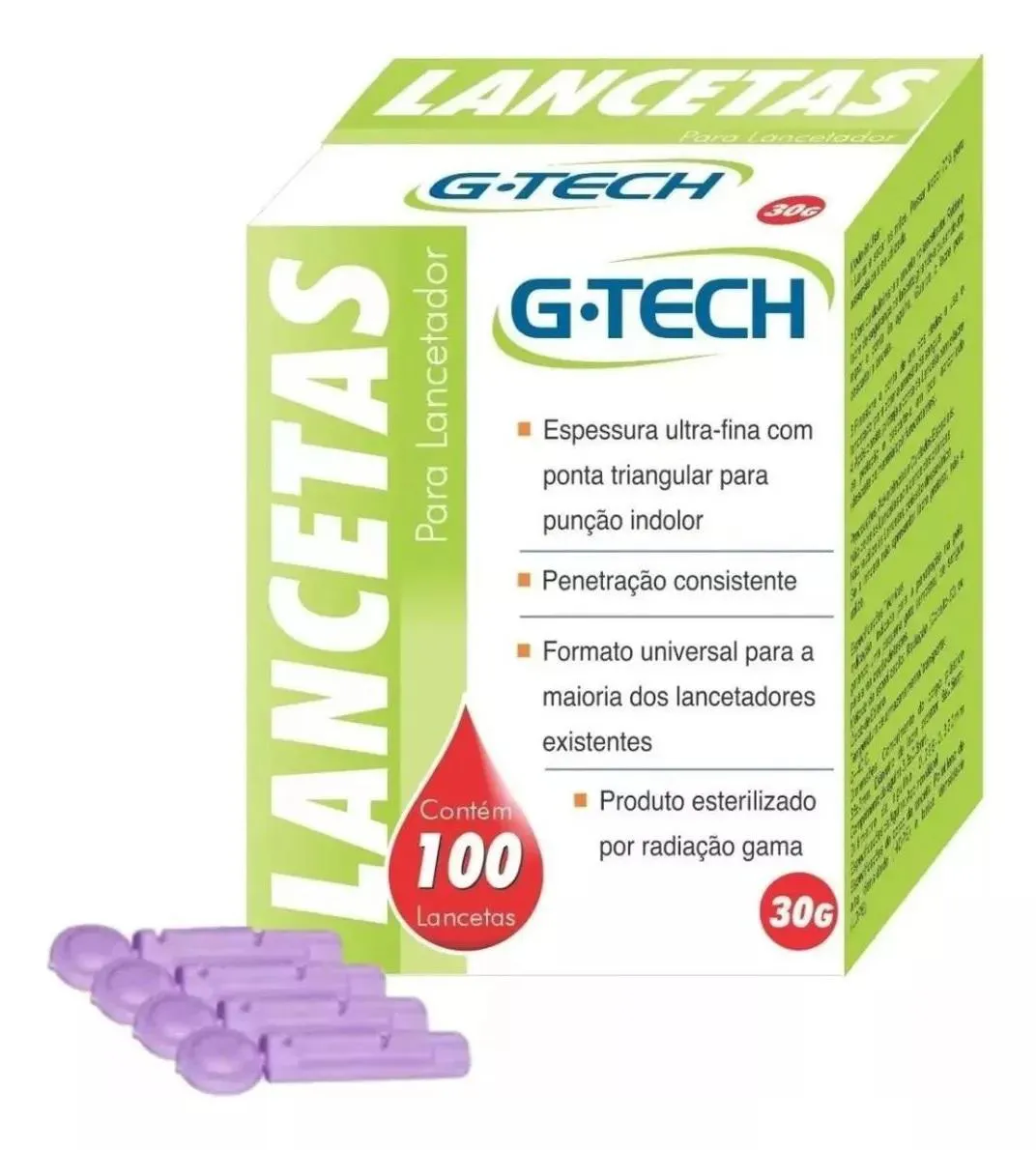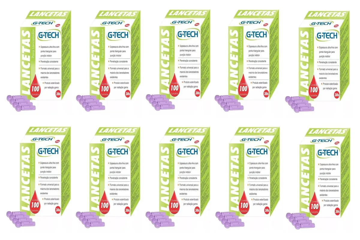 Kit 10 Lanceta para Lancetador Fina G-tech Glicemia 30g 100Un