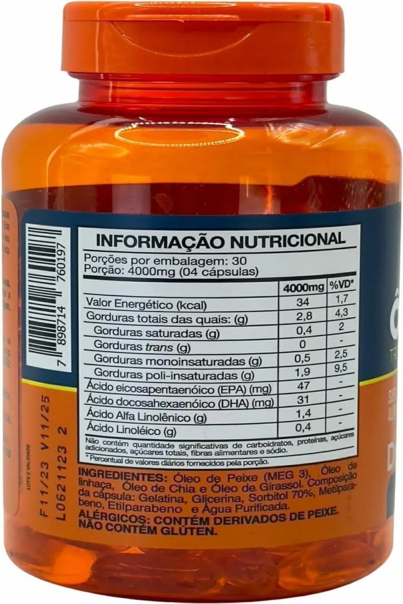 É composto de duas variedades: ácido eicosapentaenoico (EPA) e ácido docosahexaenoico (DHA).
