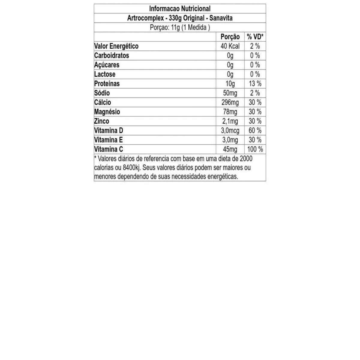 Ingredientes - Artrocomplex - 330g Original - Sanavita